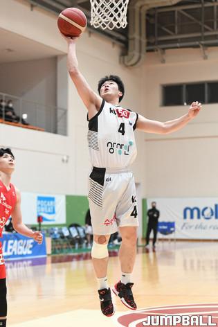 26일 경기도 이천에 위치한 LG 챔피언스파크에서 열린 2021-2022 KBL D리그 서울 SK와 수원 KT의 경기, SK 김수환이 골밑에서 슛을 시도하고 있다.