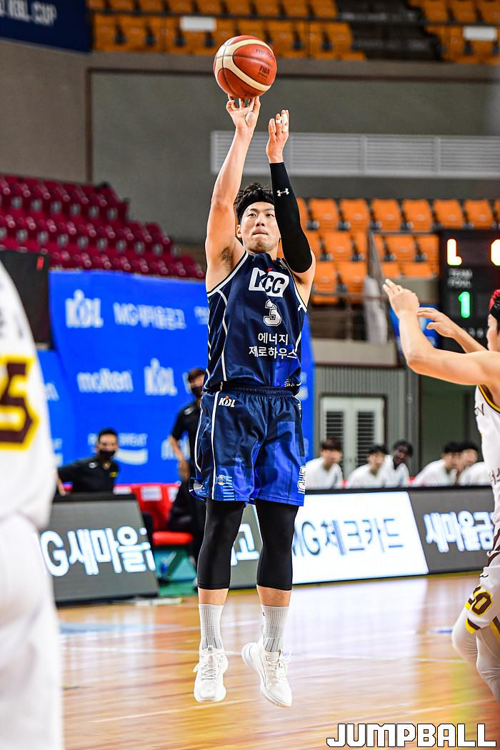 [점프볼=상주/박상혁 기자] 11일 경상북도 상주시 상주실내체육관에서 열린 '2021 MG새마을금고 KBL컵 대회' 창원 LG와 전주 KCC 경기, KCC 이정현이 3점슛을 시도하고 있다.