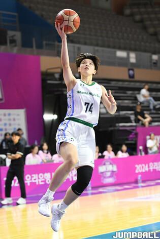 [점프볼=아산/박상혁 기자] 4일 아산 이순체육관에서 열린 2024 우리은행 박신자컵 히타치 하이테크 쿠거스와 토요타 안텔롭스의 경기, 히타치 모리오카 호노카가 3점슛을 시도하고 있다.