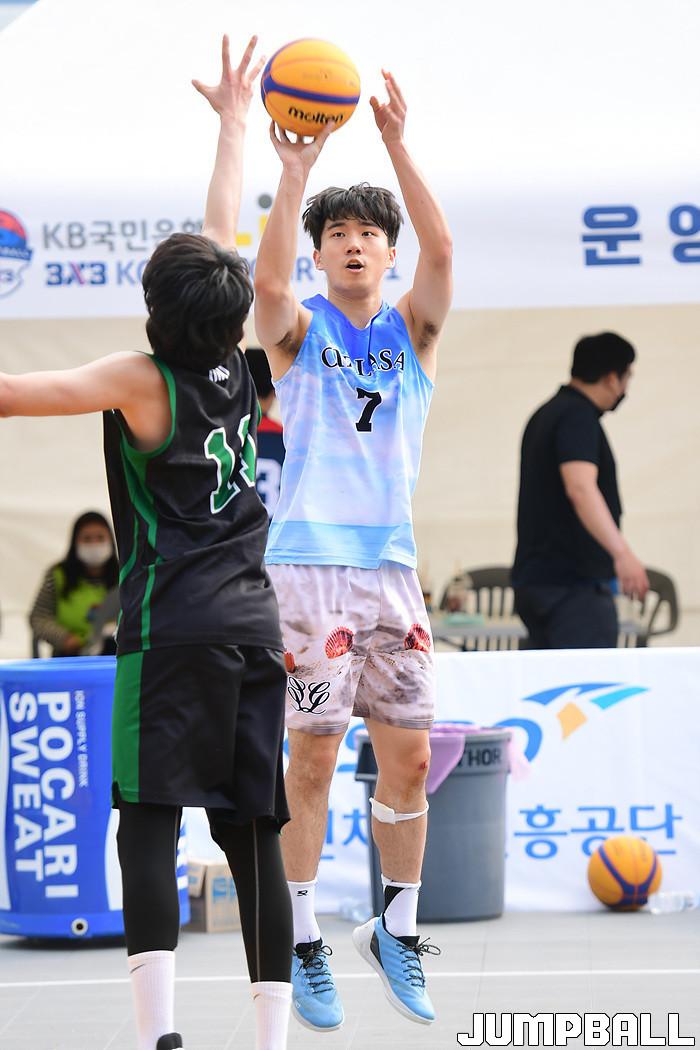 [점프볼=양구/박상혁 기자] 19일과 20일 양구청춘체육관 앞 특설코트에서 KB국민은행 LIIV m 3X3 코리아투어 IN 양구 대회가 열렸다. 오픈부 씨엘라사 정이삭이 2점슛을 시도하고 있다.