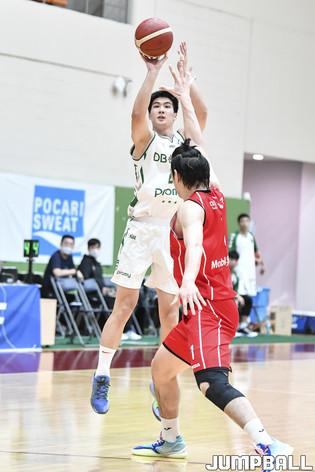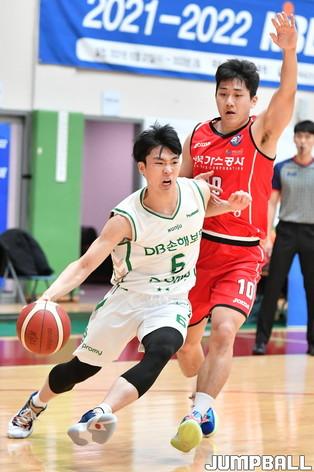 24일 이천 LG챔피언스파크 실내농구장에서 열린 2021-2022 KBL D리그 한국가스공사와 DB의 경기. 한국가스공사 신승민이 수비 리바운드를 잡아내고 있다.