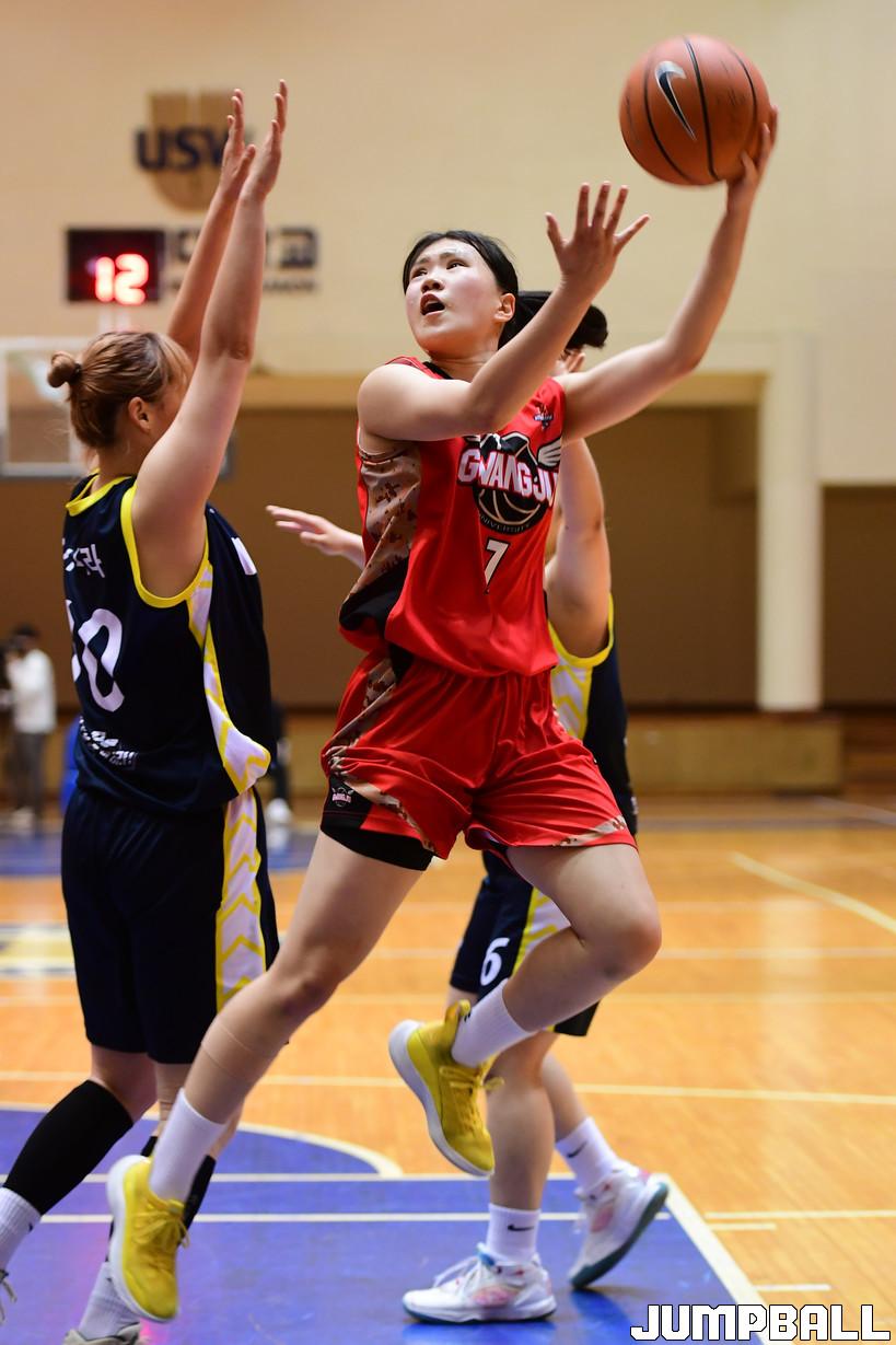 28일 수원대 체육관에서 열린 2022 KUSF 대학농구 U-리그 수원대와 광주대의 경기, 광주대 양지원이 슛을 시도하고 있다.
