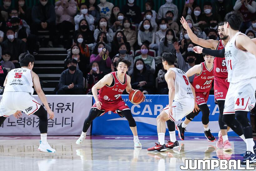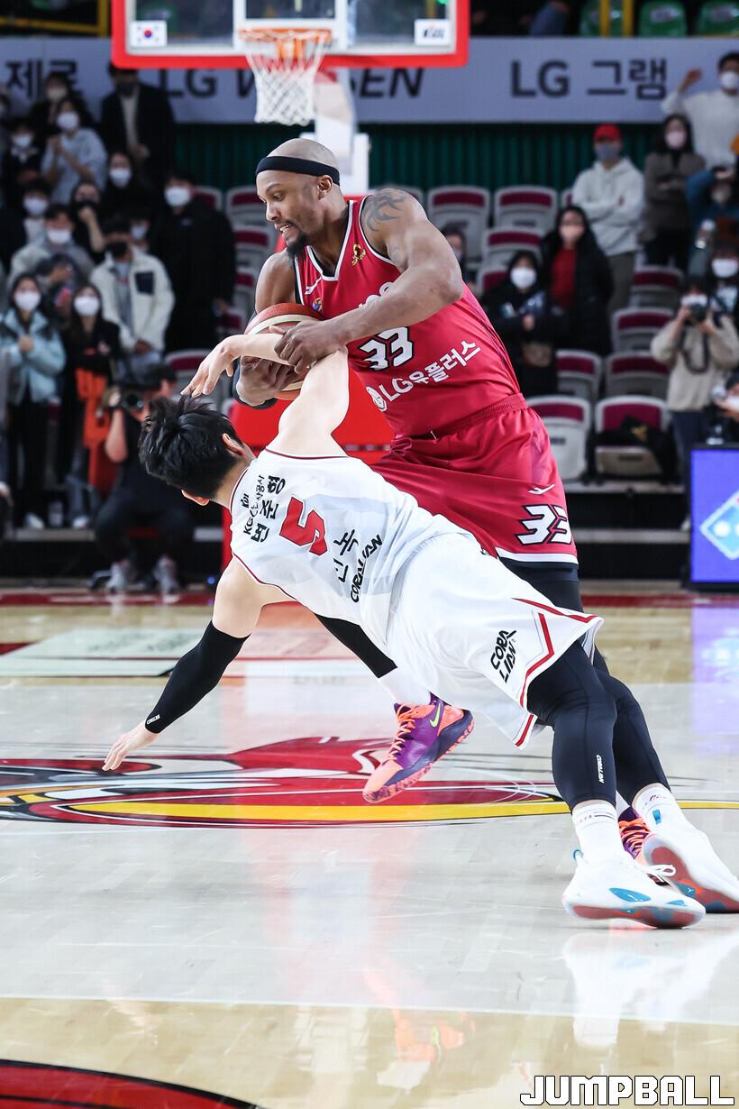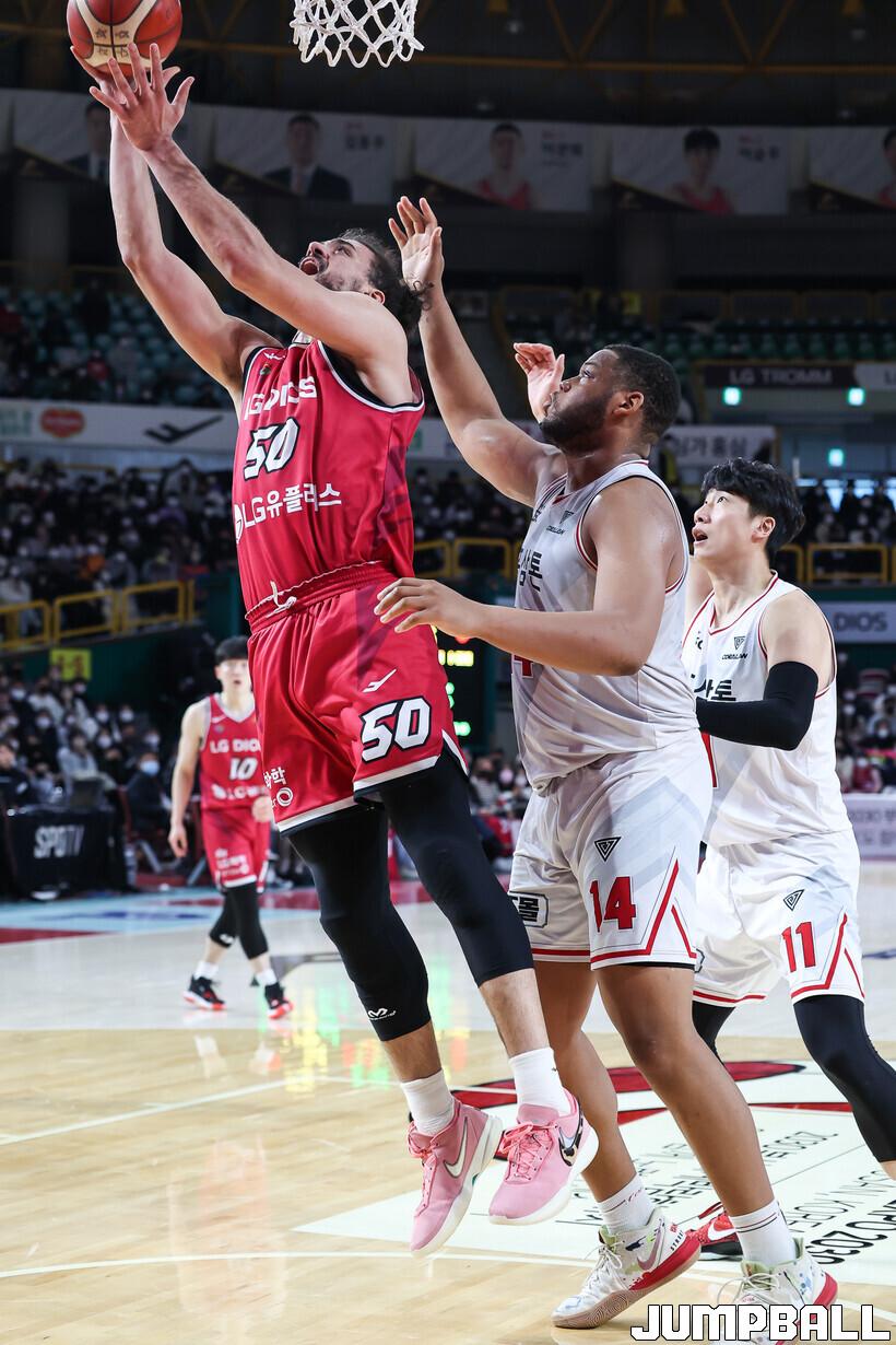 [점프볼=윤민호 기자] 창원 LG는 28일 창원체육관에서 열린 2022~2023 SKT 에이닷 프로농구 안양 KGC인삼공사와 홈 경기에서 68-63으로 이겼다.