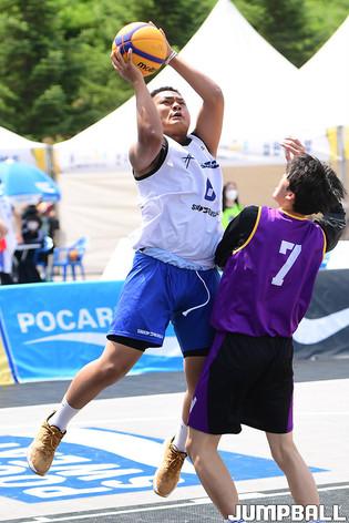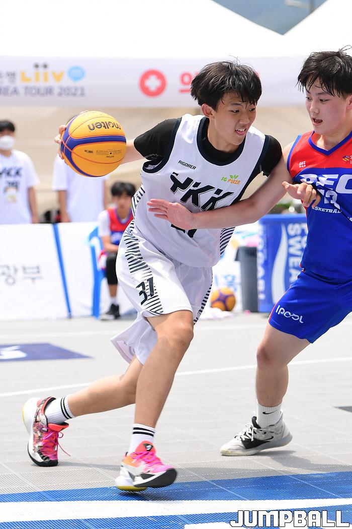 [점프볼=양구/박상혁 기자] 20일 양구청춘체육관 앞 특설코트에서 KB국민은행 LIIV m 3X3 코리아투어 IN 양구 대회가 열렸다. 중등부 YKK 주현성이 돌파를 시도하고 있다.
