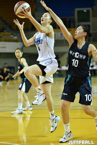 [점프볼=청주/유용우 기자] 21일 청주체육관에서 열린 '2020 우리은행 박신자컵 서머리그' 하나원큐와 삼성생명의 결승전, 삼성생명 이명관이 돌파하며 슛을 시도하고 있다.