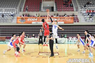 [점프볼=안암/박상혁 기자] 2일 고려대 화정체육관에서 열린 2024 KUSF 대학농구 U-리그 고려대와 조선대의 경기, 고려대 이동근이 리바운드를 잡아내고 있다.