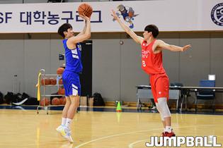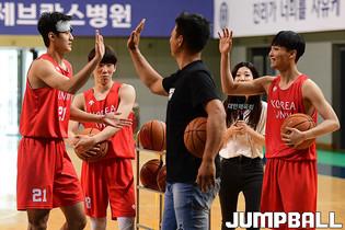 [점프볼=서울/박상혁 기자] 6일 연세대 신촌캠퍼스 체육관에서 대한체육회 주최로 '라이벌 대전' 첫회 녹화가 진행되었다. 연세대는 김택훈이 감독으로 나와 신승민과 양준석, 유기상과 팀을 이루었고, 고려대는 이현호가 감독으로 출전하여 여준형, 최성현, 김태완을 지도했다. 마지막 대결까지 마친 양 팀 감독들과 선수들이 서로를 위해 박수를 보내고 있다.