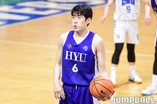 11일 한양대 서울캠퍼스 체육관에서 열린 2022 KUSF 대학농구 U-리그 한양대와 조선대의 경기, 조선대 최재우가 레이업슛을 시도하고 있다.