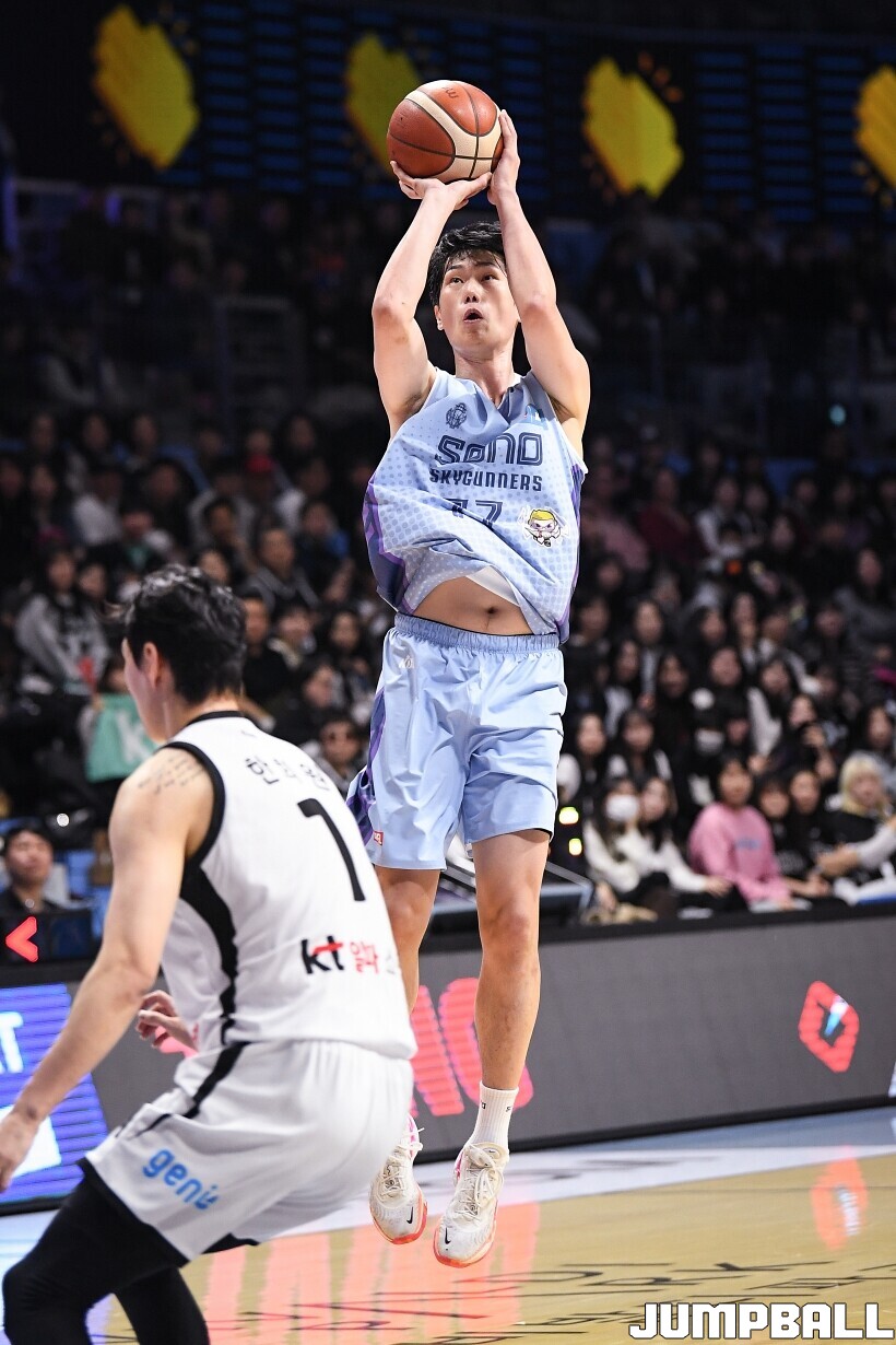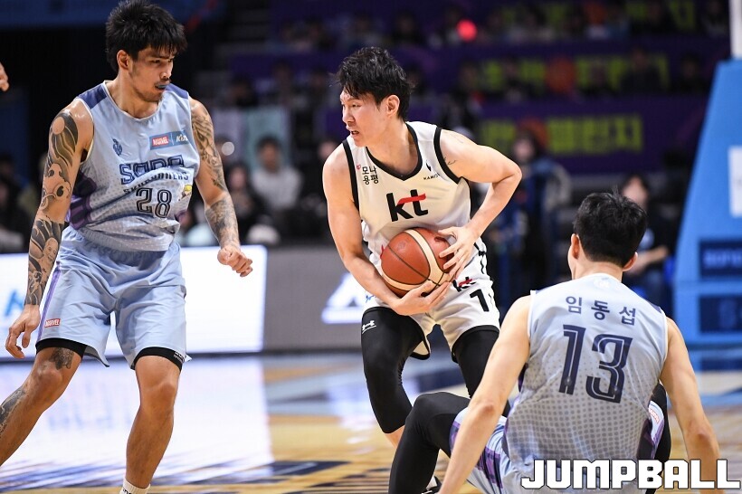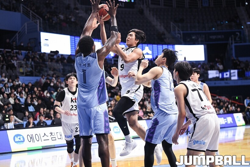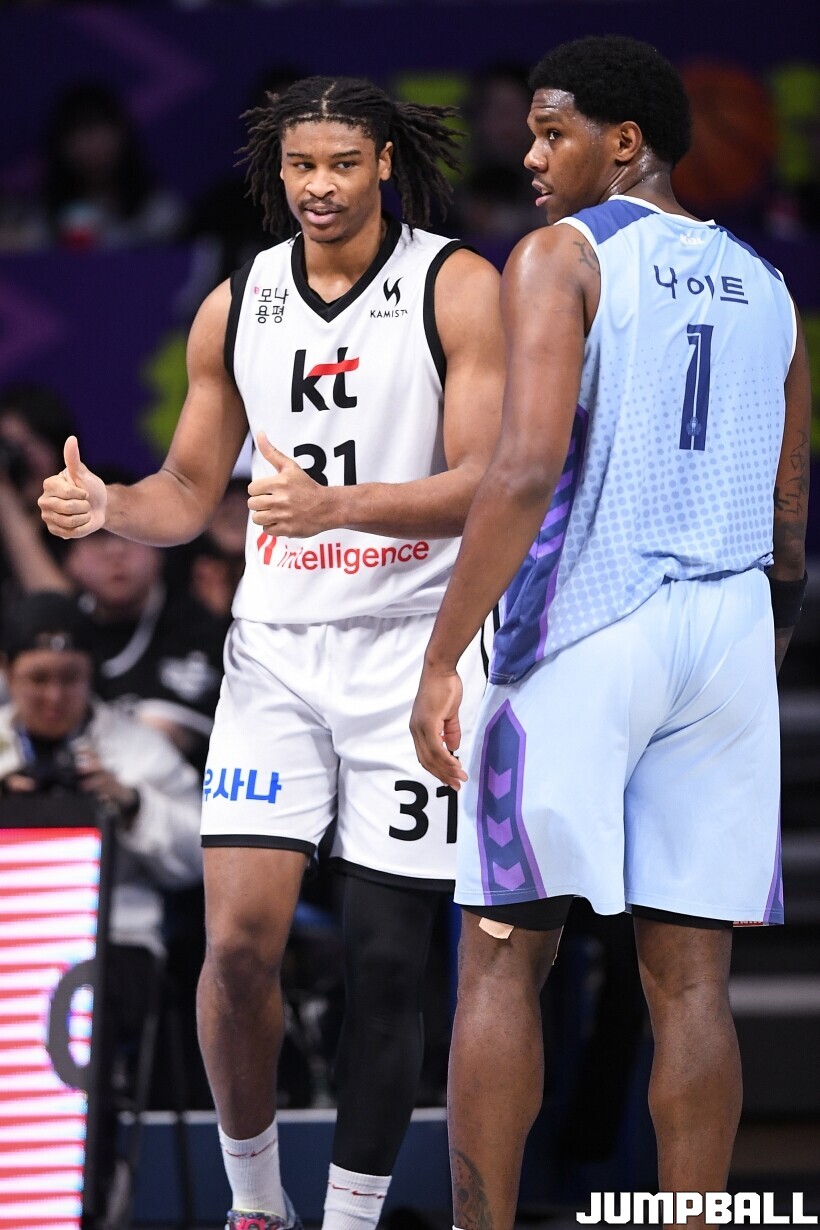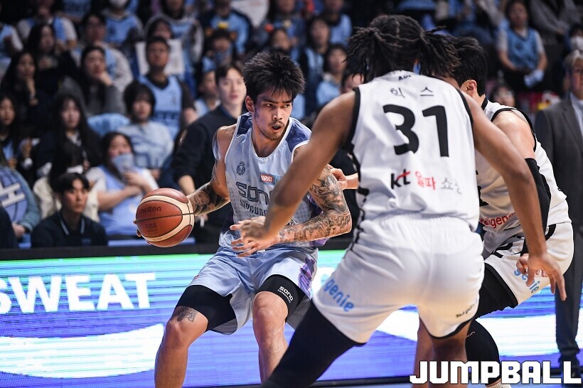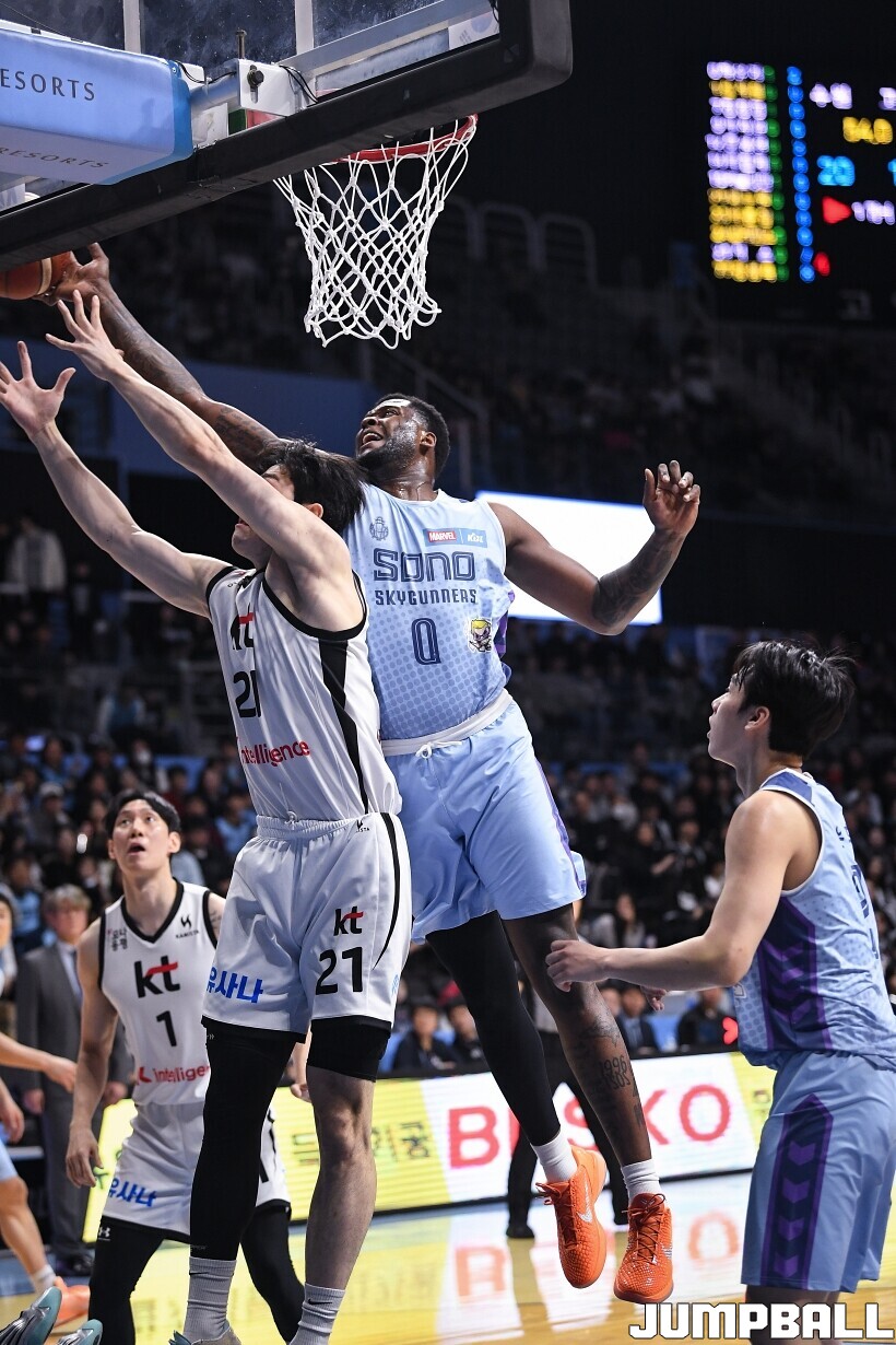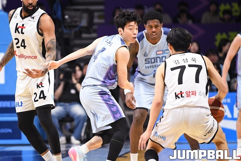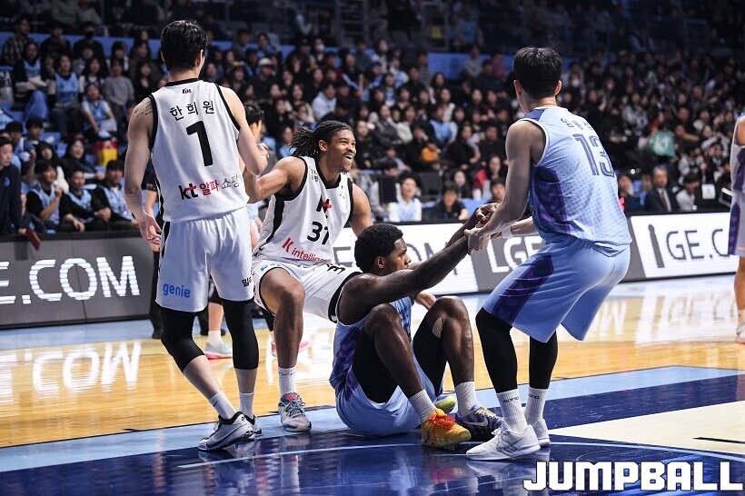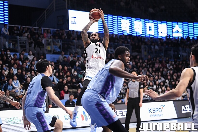 [점프볼=고양/유용우 기자] 3일 고양 소노 아레나에서 열린 2025-2026 LG전자 프로농구 고양 소노와수원 KT의 경기, 아이재아 힉스와 신인 강성욱이 36점을 합작한 KT가 76-64로 소노에 원정 승리를 거뒀다. 소노는 나이트 18점, 켐바오 17점 등 올리며 분전했지만 출전한 선수가 고른 득점을 올린 KT에 밀리며 패했다.