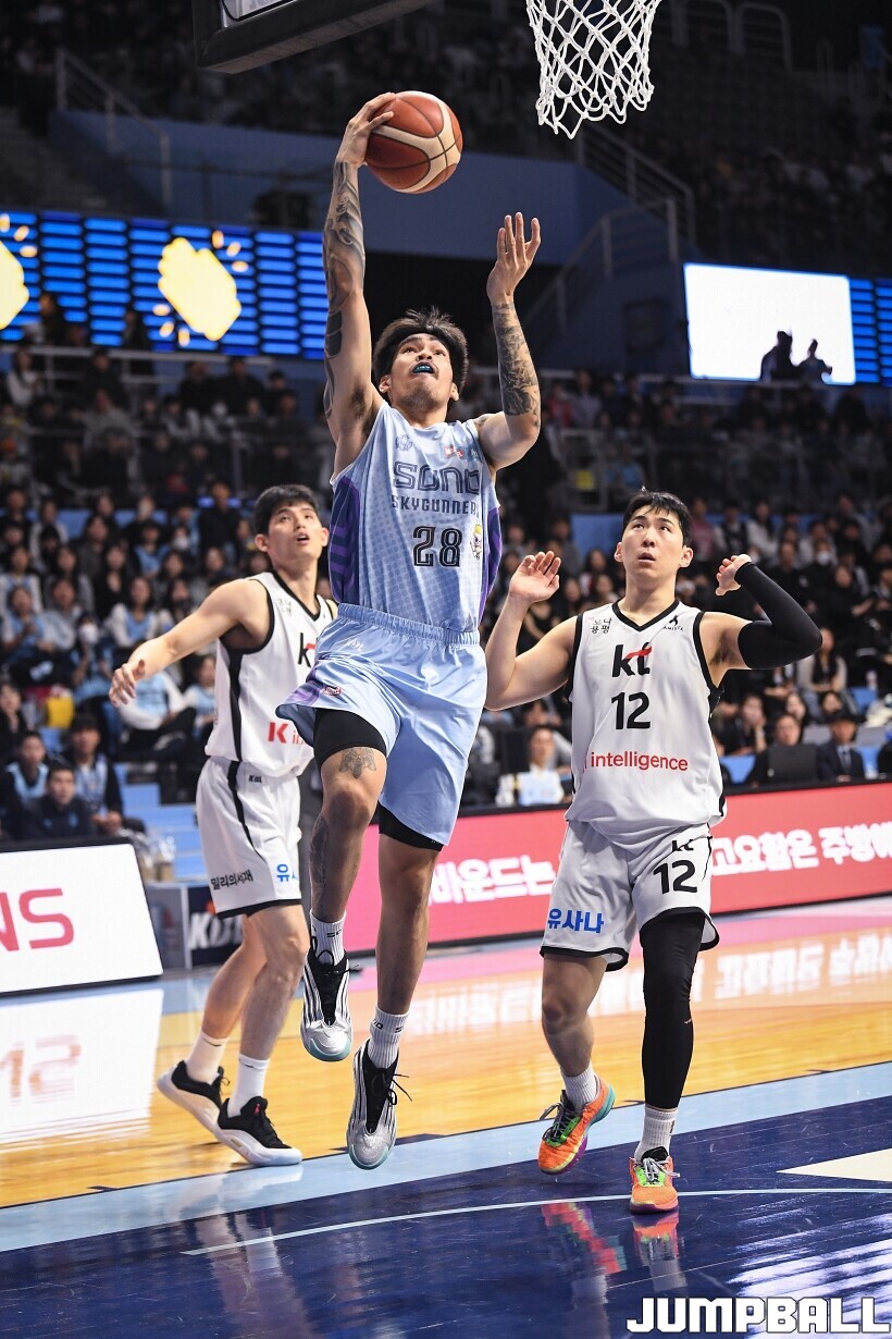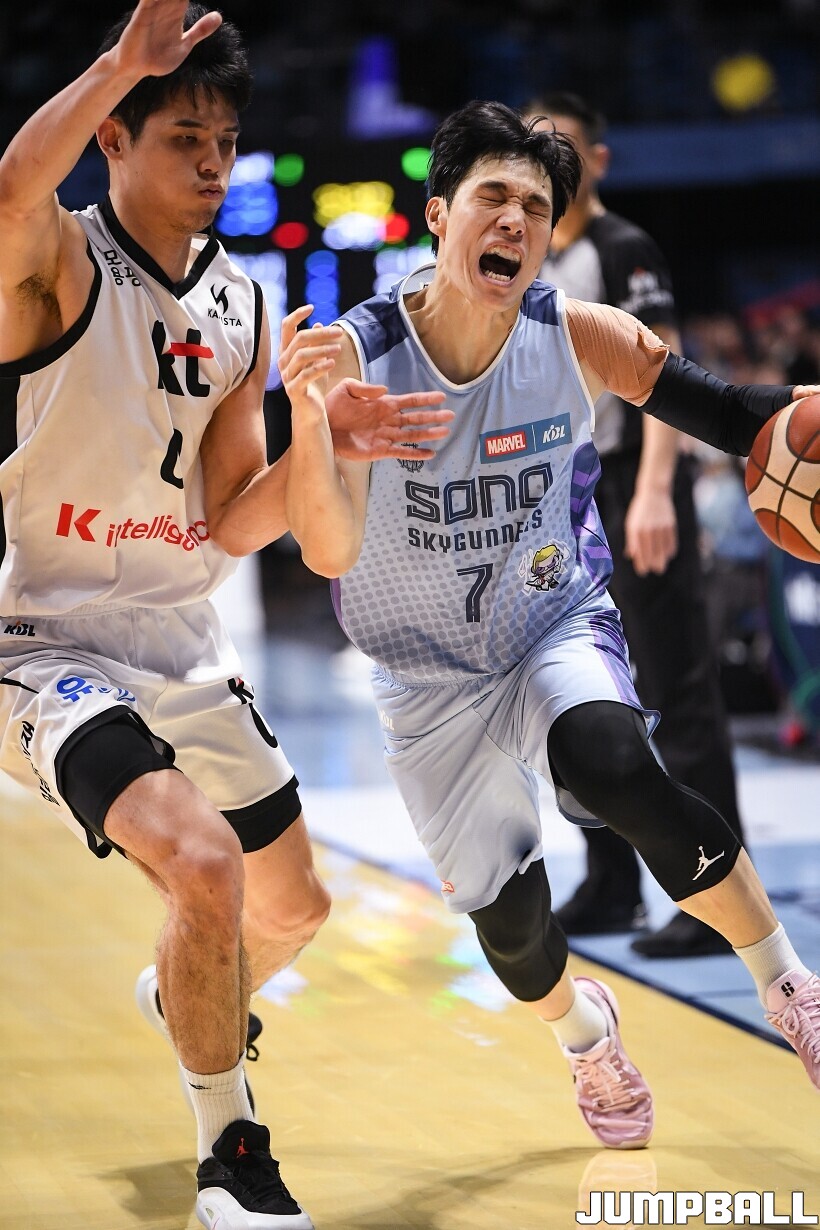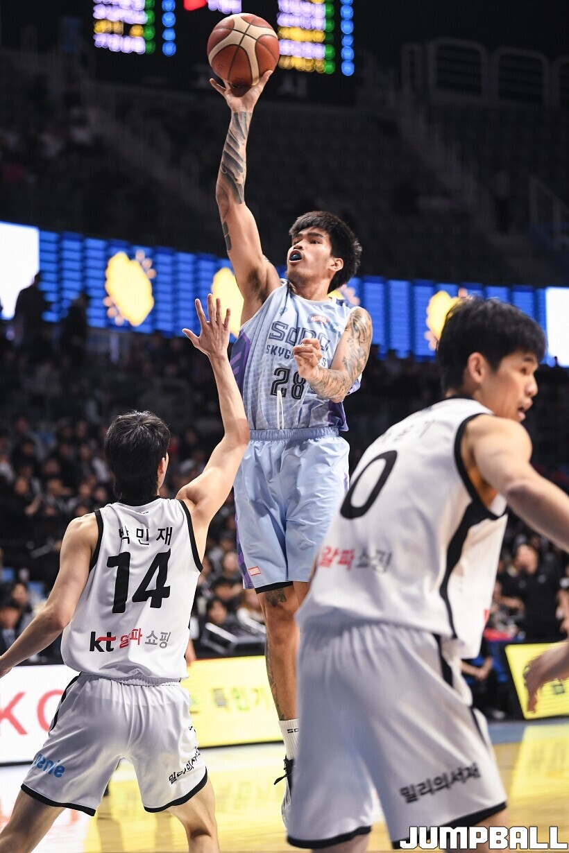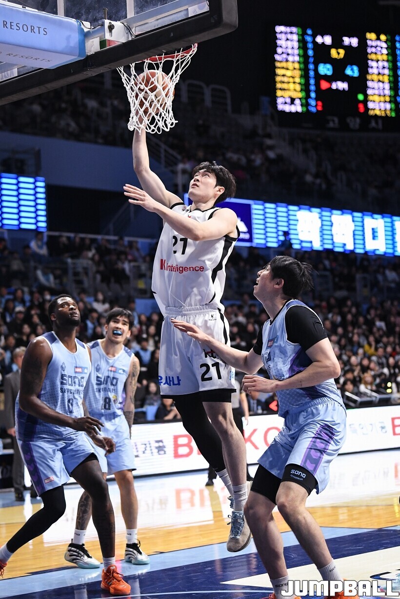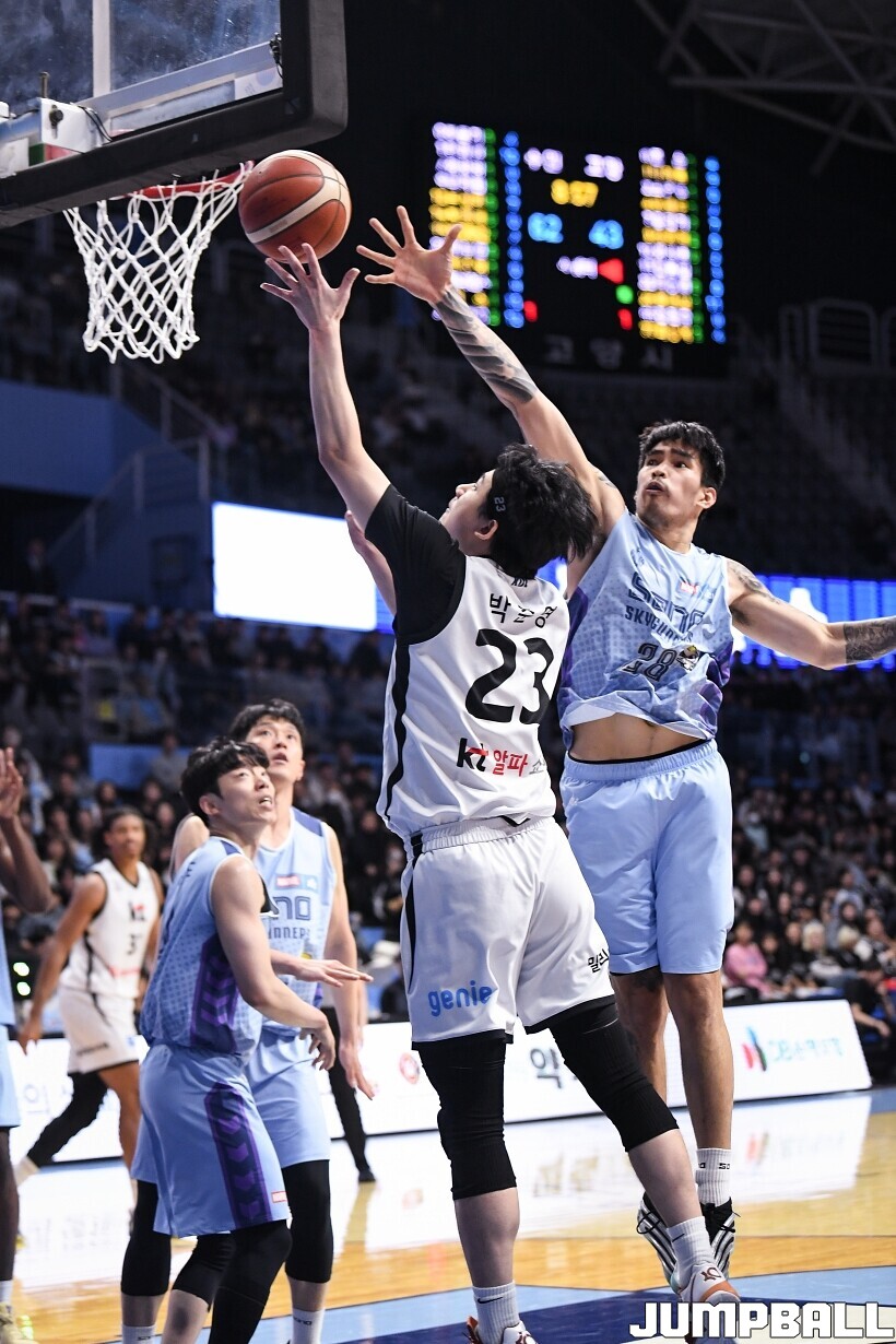 [점프볼=고양/유용우 기자] 3일 고양 소노 아레나에서 열린 2025-2026 LG전자 프로농구 고양 소노와수원 KT의 경기, 아이재아 힉스와 신인 강성욱이 36점을 합작한 KT가 76-64로 소노에 원정 승리를 거뒀다. 소노는 나이트 18점, 켐바오 17점 등 올리며 분전했지만 출전한 선수가 고른 득점을 올린 KT에 밀리며 패했다.
