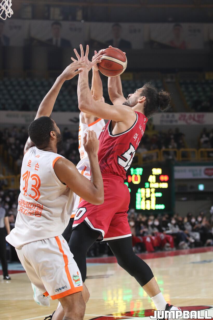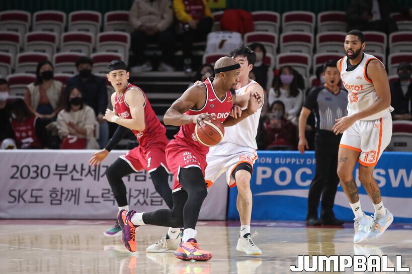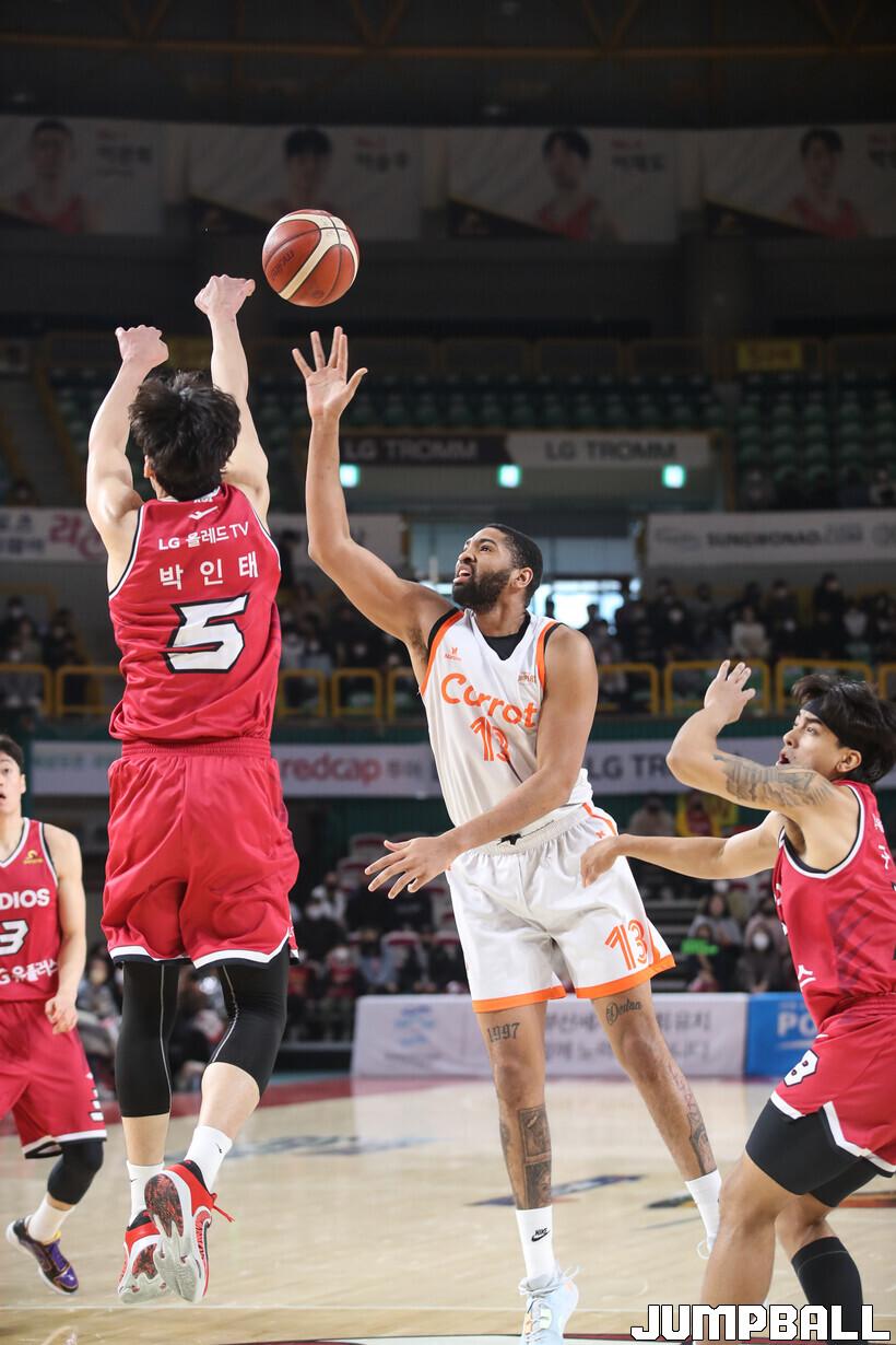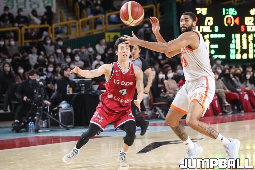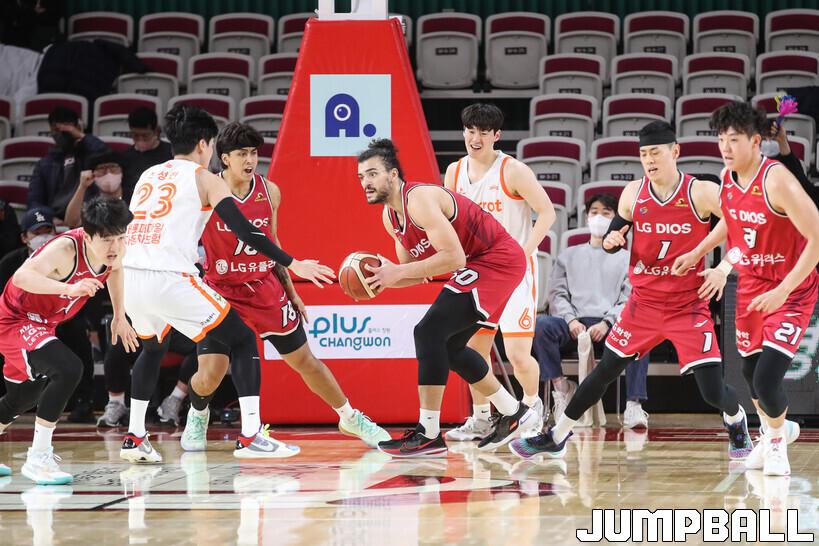[점프볼=정을호 기자] 07일 창원체육관에서 열린 2022-2023 SKT 에이닷 프로농구 창원 LG와 고양 캐롯의 경기, 고양 캐롯이 창원 LG에 73-64로 승리하였다. 창원 LG와 고양 캐롯의 경기화보