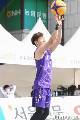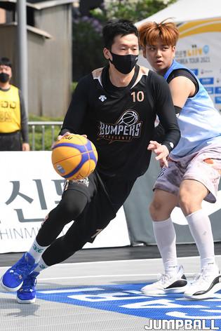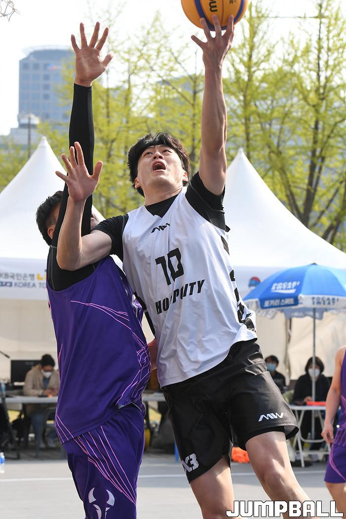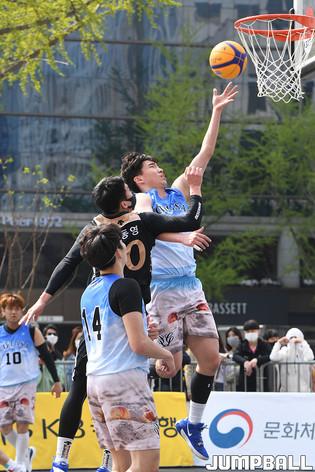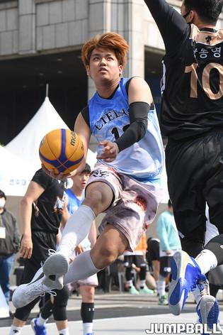 [점프볼=서울/박상혁 기자] 10일 서울신문사앞 특설코트에서 열린 KB국민은행 LIIV m 3X3 코리아투어 2021 서울 대회, 오픈부 마스터욱이 레이업슛을 시도 하고 있다.