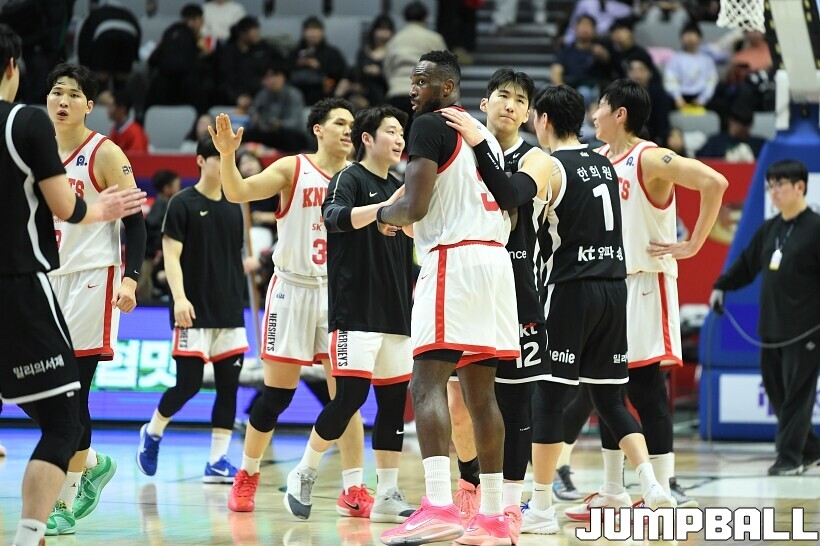 [점프볼=수원/유용우 기자] 14일 KT 소닉붐 아레나에서 열린 2025-2026 LG전자 프로농구 수원 KT과 서울 SK의 경기, SK 자밀 워니가 25점 16리바운드 5어시스트 2블록을 기록하며 맹활약한 가운데, SK가 75-69로 KT를 꺾었다. 안영준은 23점 4리바운드 2어시스트 1스틸, 에디 다니엘 11점 5리바운드 1어시스트 2스틸 1블록을 기록하며 팀 승리에 기여했다.