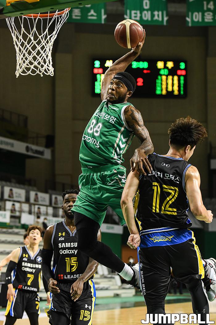 [점프볼=원주/박상혁 기자] 9일 원주종합체육관에서 열린 2020-2021 현대모비스 프로농구 원주DB와 서울삼성 개막전 경기, DB 존스가 덩크슛을 시도하고 있다.