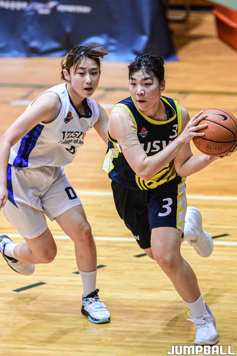 20일 수원대 체육관에서 열린 2022 대학농구 U-리그 수원대와 전주비전대의 경기, 수원대 백수정이 돌파를 시도하고 있다.