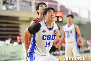 [점프볼=안암/박상혁 기자] 2일 고려대 화정체육관에서 열린 2024 KUSF 대학농구 U-리그 고려대와 조선대의 경기, 조선대 이영웅이 석민준과 하이파이브를 하고 있다.