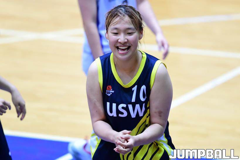 20일 수원대 체육관에서 열린 2022 대학농구 U-리그 수원대와 전주비전대의 경기, 수원대 이나라가 환호하고 있다.