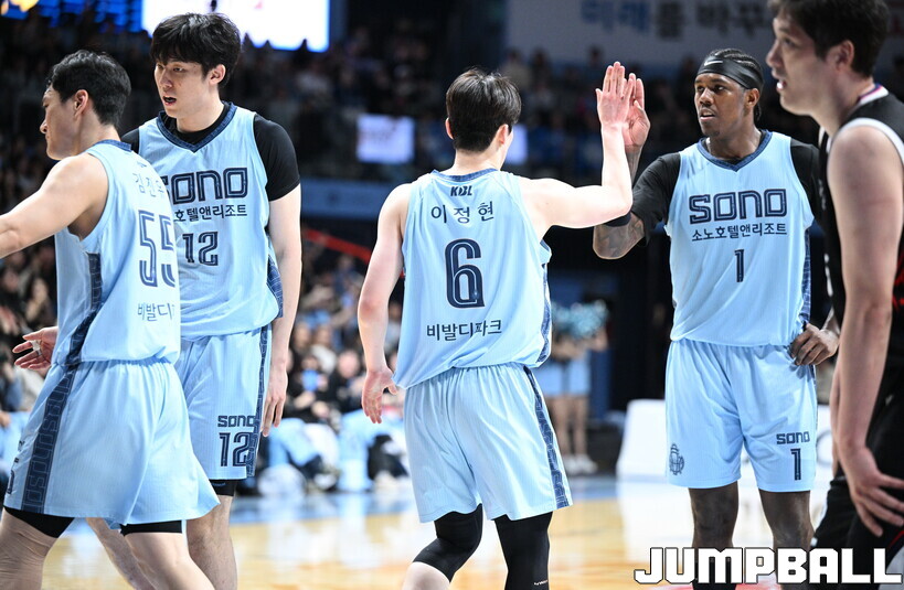 소노는 전반 리드를 챙겼다. 1쿼터에만 1쿼터에만 두 자릿수 득점을 기록한 나이트(12점)와 켐바오(10점)가 22점을 합작했고, 좋은 수비도 돋보였다. 2쿼터 초반까지 기세를 이어갔지만 중반 이후 경기력이 떨어지며 현대모비스의 추격을 허용, 44-38로 쫓기며 전반을 마쳤다.