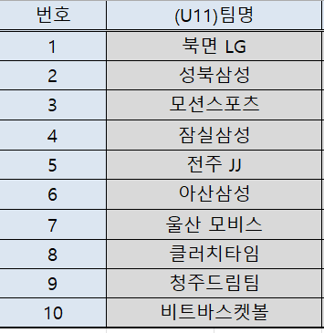 *제5회 결초보은배 점프볼 전국 유소년 농구대회 참가 팀 현황* ※3x3는 45팀 참가 예정