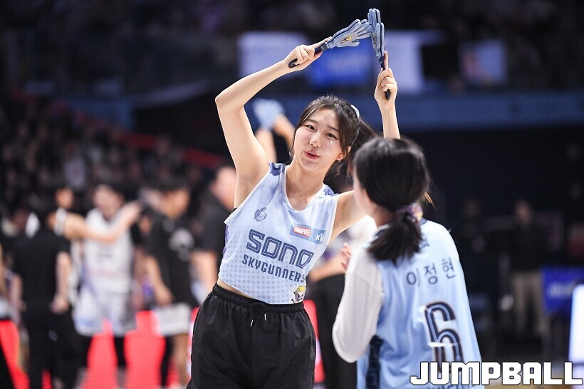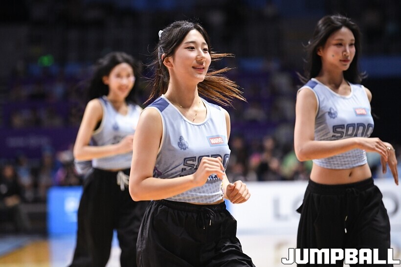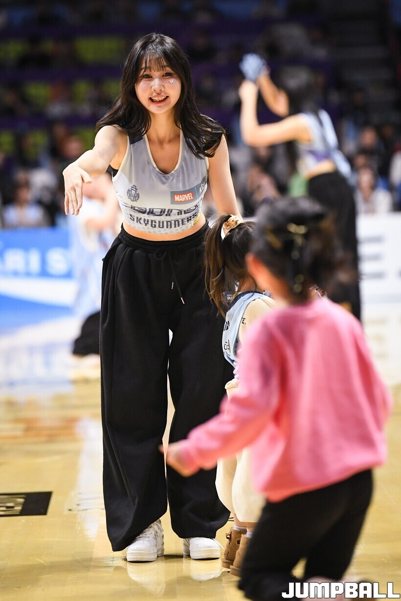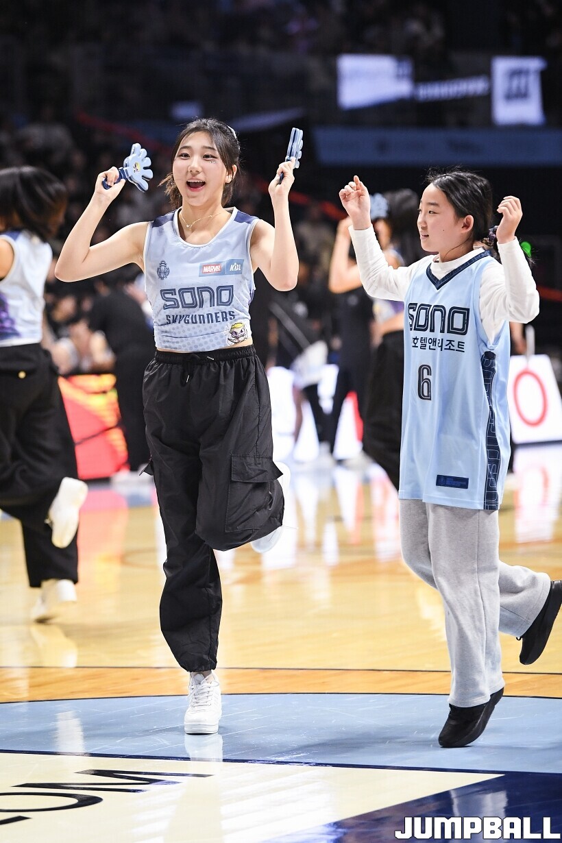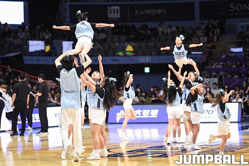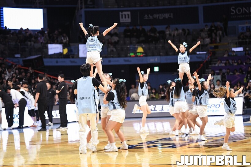 [점프볼=고양/유용우 기자] 3일 고양 소노 아레나에서 열린 2025-2026 LG전자 프로농구 고양 소노와수원 KT의 경기, 소노 치어리더들이 어린이 팬들을 코트로 이끌며 즐거운 응원전을 펼치고 있다.