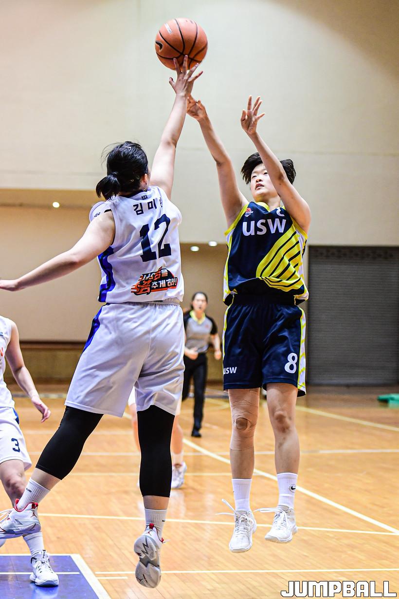 20일 수원대 체육관에서 열린 2022 대학농구 U-리그 수원대와 전주비전대의 경기, 수원대 임진솔이 점프슛을 시도하고 있다.
