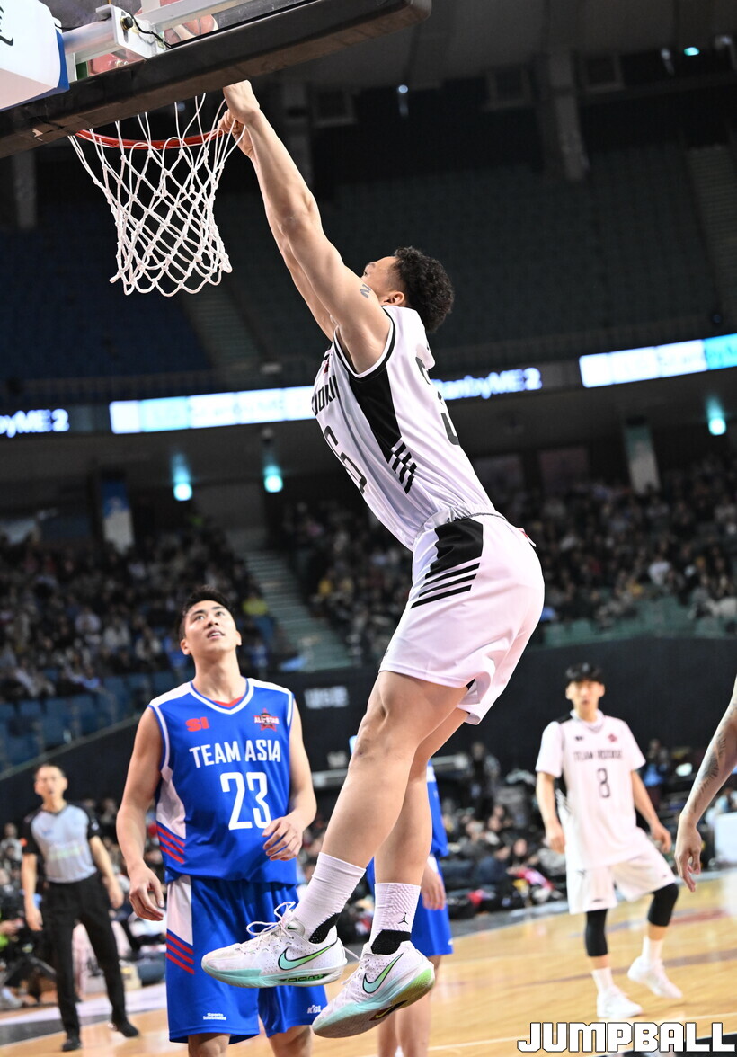 팀 아시아는 17일 잠실체육관에서 열린 2025-2026 LG전자 프로농구 올스타게임 전야제에서 팀 루키에 82-79로 승리했다. 알빈 톨렌티노(19점 3점슛 5개 14리바운드 5어시스트), 윌리엄 나바로(22점 4리바운드 5어시스트) 등 4명이 두 자리 득점을 기록하며 승리를 합작했다. 팀 루키에서는 에디 다니엘(19점 6리바운드 2어시스트)이 최다득점을 기록했다.