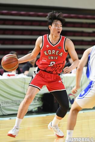 [점프볼=안암/박상혁 기자] 2일 고려대 화정체육관에서 열린 2024 KUSF 대학농구 U-리그 고려대와 조선대의 경기, 조선대 하재형이 패턴 지시를 하고 있다.