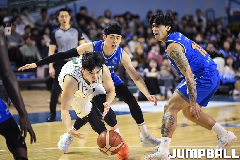 [점프볼=잠실/유용우 기자] 4일 잠실실내체육관에서 열린 2025-2026 LG전자 프로농구 서울 삼성과 원주 DB의 경기, DB 이용우가 수비를 돌파하고 있다.
