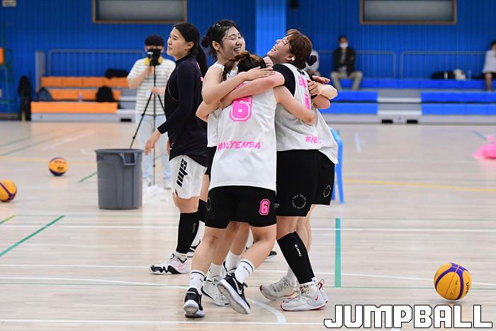 [점프볼=양구/박상혁 기자] 20일 양구청춘체육관에서 KB국민은행 LIIV m 3X3 코리아투어 IN 양구 대회가 열렸다. 여자오픈부 1EYENBA 선수단이 우승을 확정지은후 환호하고 있다.