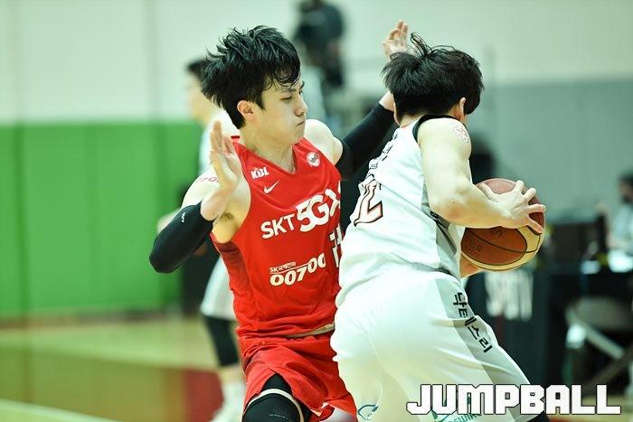[점프볼=이천/유용우 기자] 16일 이천 LG 챔피언스파크에서 열린 2020-2021 KBL D-리그 2차 대회 SK와 전자랜드의 챔피언 결정전, SK 배병준이 밀착수비를 펼치고 있다.