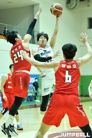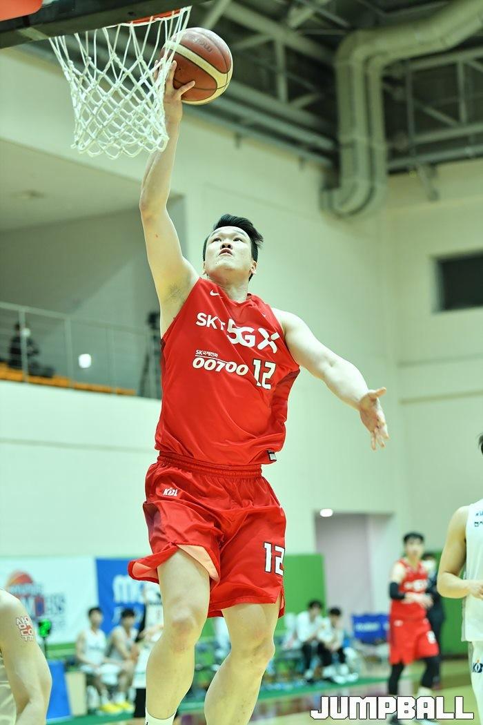 [점프볼=이천/유용우 기자] 16일 이천 LG 챔피언스파크에서 열린 2020-2021 KBL D-리그 2차 대회 SK와 전자랜드의 챔피언 결정전, SK 송창무가 공격하고 있다.