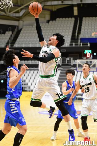 [점프볼=수원/박상혁 기자] 25일 서수원칠보체육관에서 열린 2021 KUSF 대학농구 U-리그 건국대와 조선대의 경기, 조선대 최승우가 슛을 시도하고 있다.