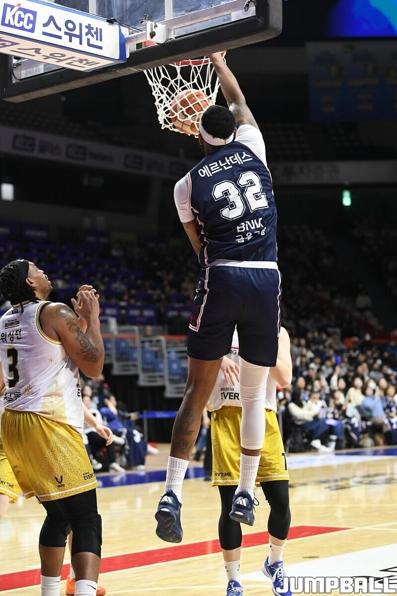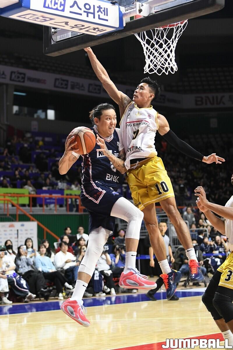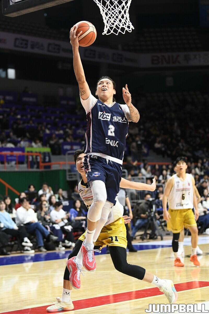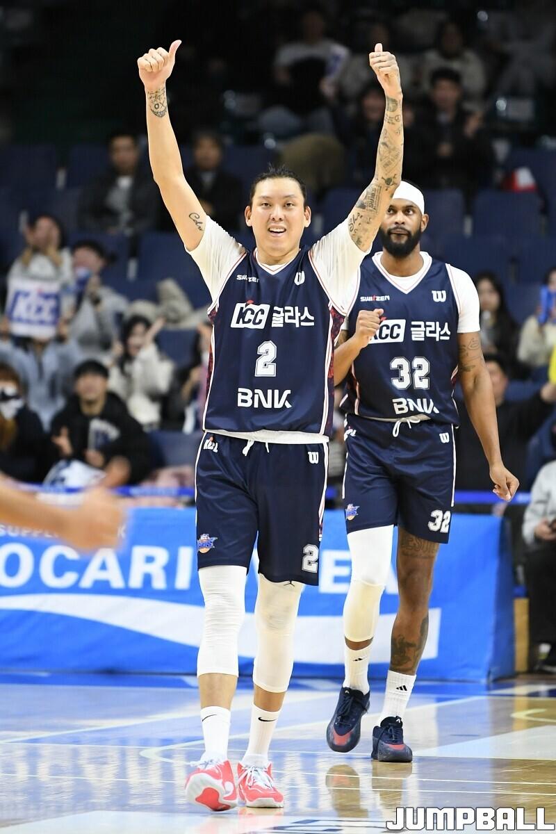[점프볼=부산/유용우 기자] 14일 부산 사직실내체육관에서 열린 2025-2026 LG전자 프로농구 부산 KCC와 안양 정관장의 경기, 최준용이 복귀한 KCC가 103-76으로 승리했다. KCC 최준용은 16점 7리바운드를 기록하며 팀 승리에 기여했다. 허웅, 허훈 형제는 나란히 15점씩 득점했다. 숀 롱은 양팀 최다득점인 17점 12리바운드 더블더블을 기록하며 득점력을 과시했다.