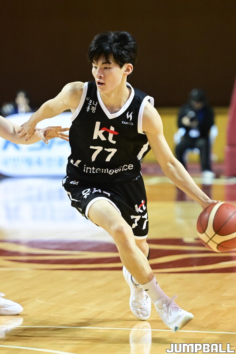 이에 앞서서는 2라운드에서 지명한 박민재가 팀이 22-20으로 근소하게 앞선 2쿼터 중반 스틸에 이은 덩크슛을 꽂아넣으며 눈길을 끌었다. 박민재, 강성욱의 연이은 가로채기 득점으로 KT는 상승세를 탈 수 있었다.