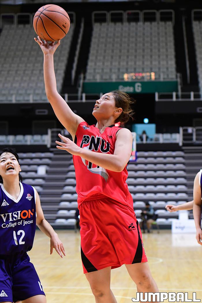 [점프볼=수원/박상혁 기자] 29일 서수원칠보체육관에서 열린 2020 KUSF 대학농구 U-리그 부산대와 전주비전대의 여대부 결승전 경기, 부산대 전윤지가 레이업슛을 시도하고 있다.