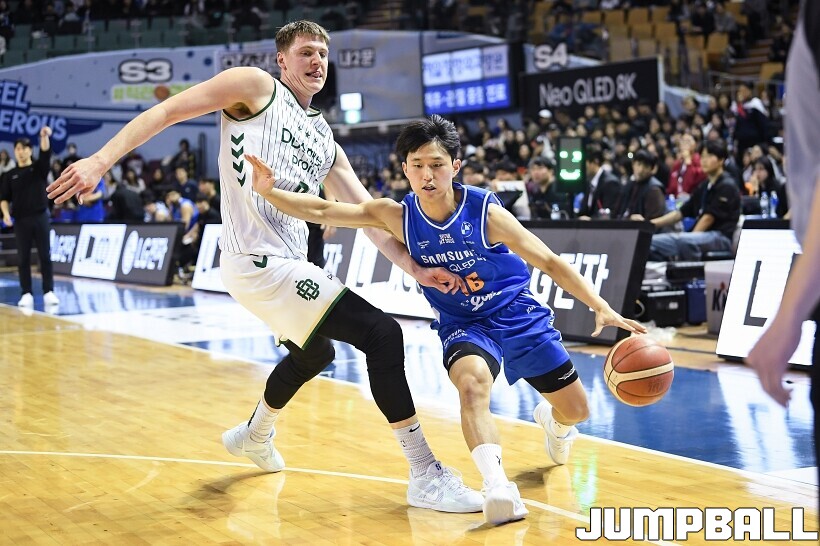 [점프볼=잠실/유용우 기자] 4일 잠실실내체육관에서 열린 2025-2026 LG전자 프로농구 서울 삼성과 원주 DB의 경기, 삼성 황영찬이 돌파를 시도하고 있다.