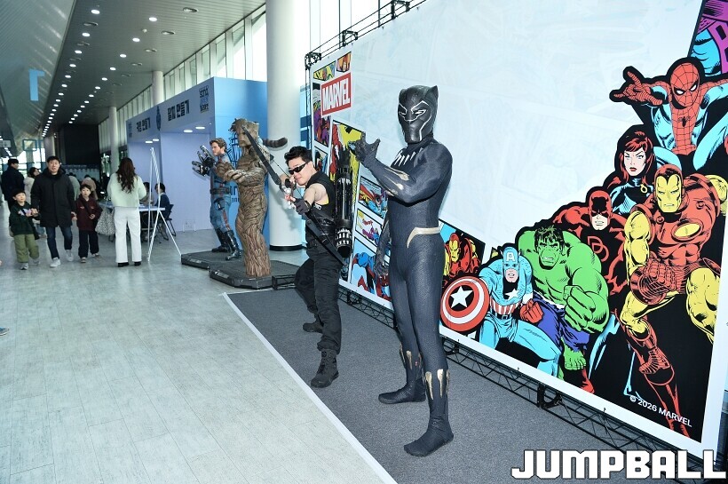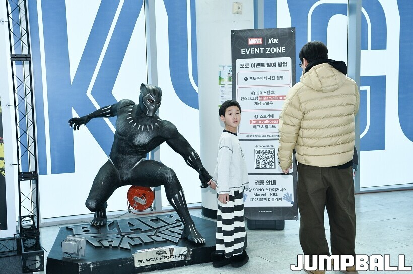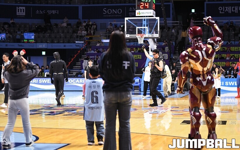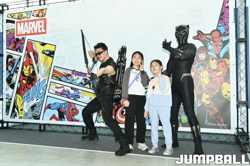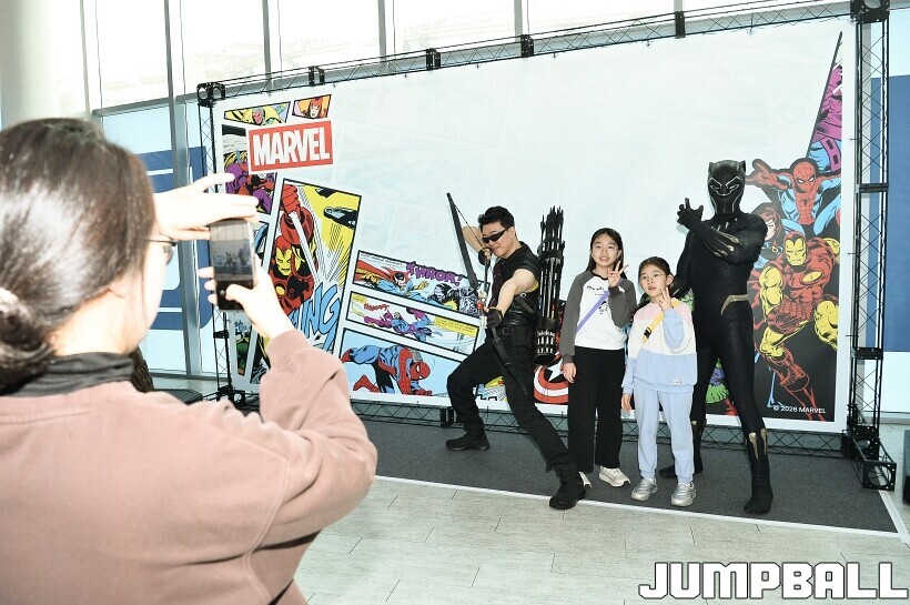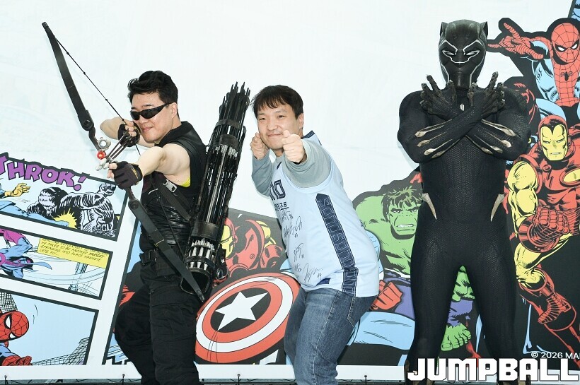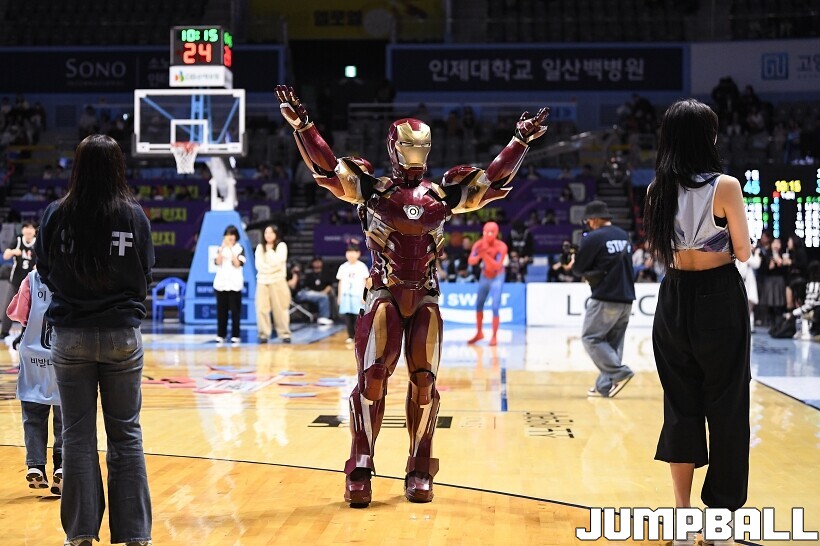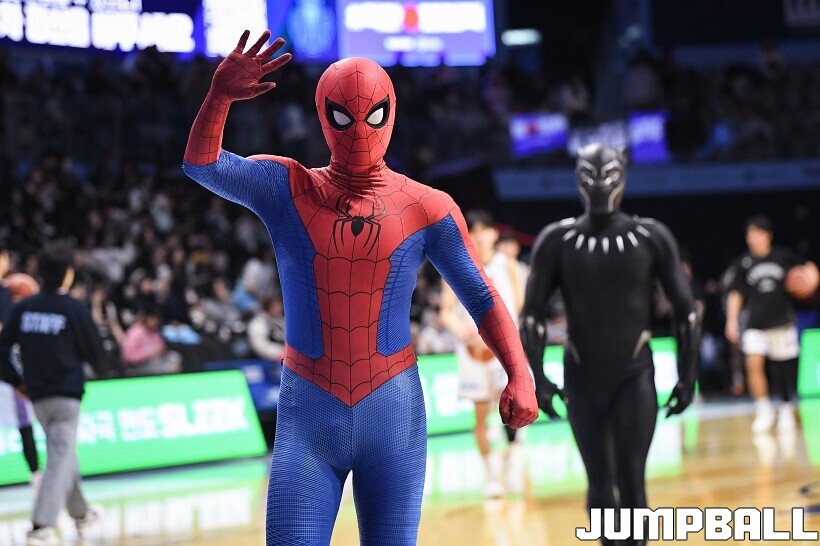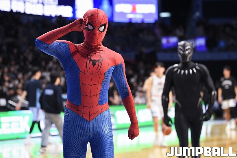 [점프볼=고양/유용우 기자] 3일 고양 소노 아레나에서 열린 2025-2026 LG전자 프로농구 고양 소노와수원 KT의 경기, 당일 경기는 월트디즈니 컴퍼니 코리아와 협업하여 마블 테마의 경기 이벤트 ‘마블 매치(MARVEL MATCH)’로 개최됐다. 현장에는 마블 캐릭터 코스튬을 입은 마블 히어로들이 팬들이 함께하는 포토존, ‘응원타임’, ‘하프타임 코트 이벤트’ 등 다양한 참여형 프로그램이 진행됐다.
