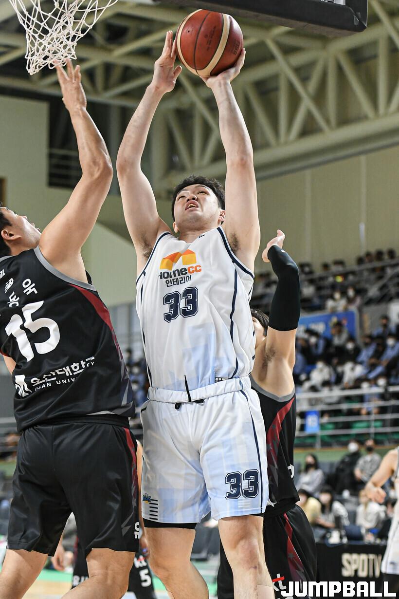 6일 통영체육관에서 열린 2022 MG새마을금고 KBL 컵대회 부산 KT와 전주 KCC의 경기, KCC 이승현이 골밑에서 슛을 시도하고 있다.