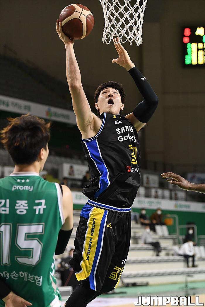 [점프볼=원주/박상혁 기자] 9일 원주종합체육관에서 열린 2020-2021 현대모비스 프로농구 원주DB와 서울삼성 개막전 경기, 삼성 김준일이 레이업슛을 시도하고 있다.