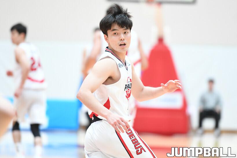 [점프볼=이천/박상혁 기자] 7일 경기도 이천에 위치한 LG 챔피언스파크에서 열린 2023-2024 KBL D리그 창원 LG와 울산 현대모비스의 경기, 현대모비스 박재한이 백코트를 하고 있다.