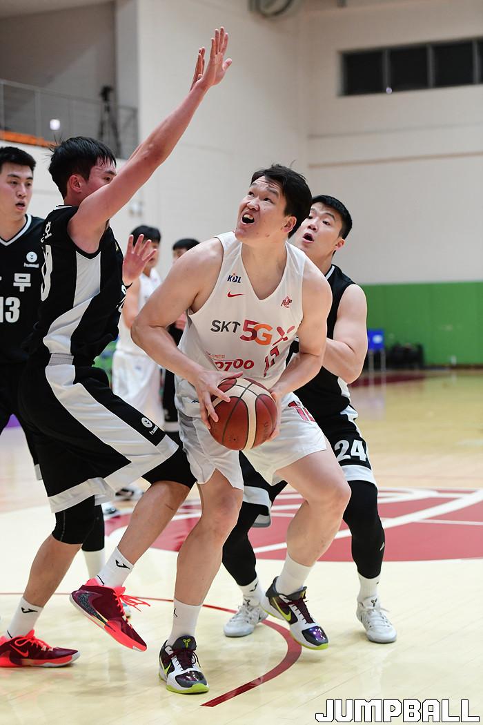 [점프볼=이천/박상혁 기자] 4일 경기도 이천 LG챔피언스파크에서 열린 2020-2021 KBL D리그 1차대회 SK와 상무의 결승전 경기, SK 송창무가 골밑에서 공격을 시도하고 있다.