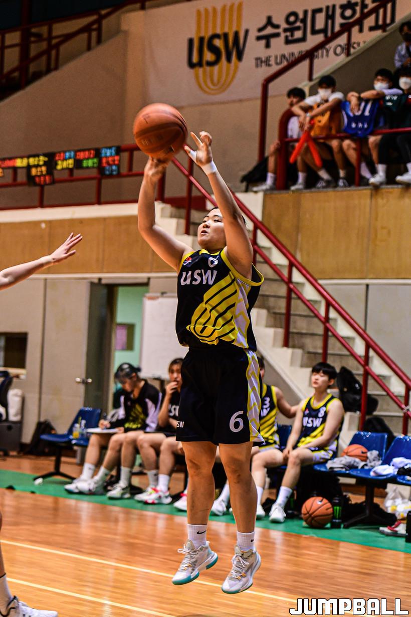 20일 수원대 체육관에서 열린 2022 대학농구 U-리그 수원대와 전주비전대의 경기, 수원대 류자언이 3점슛을 시도하고 있다.