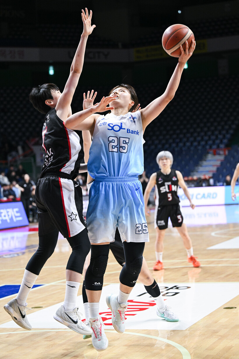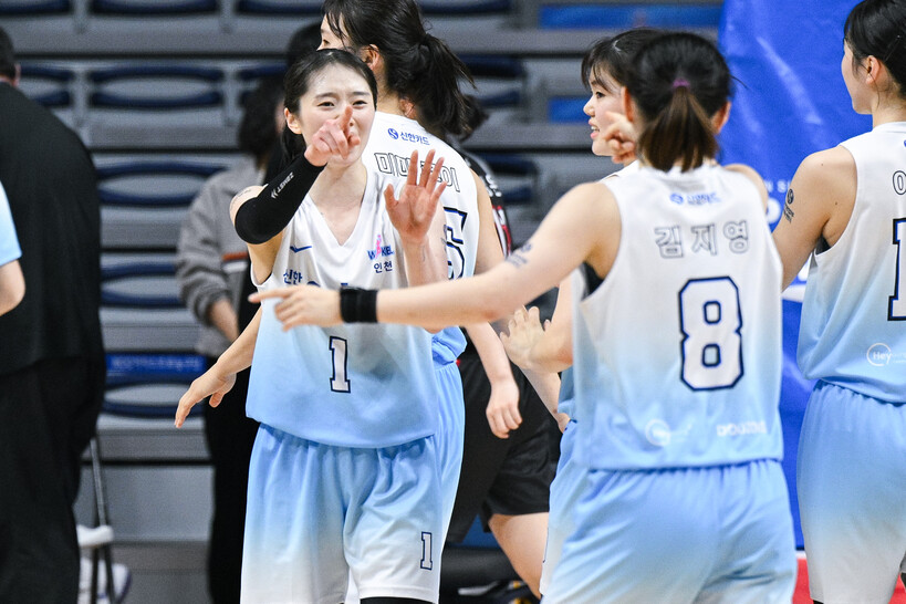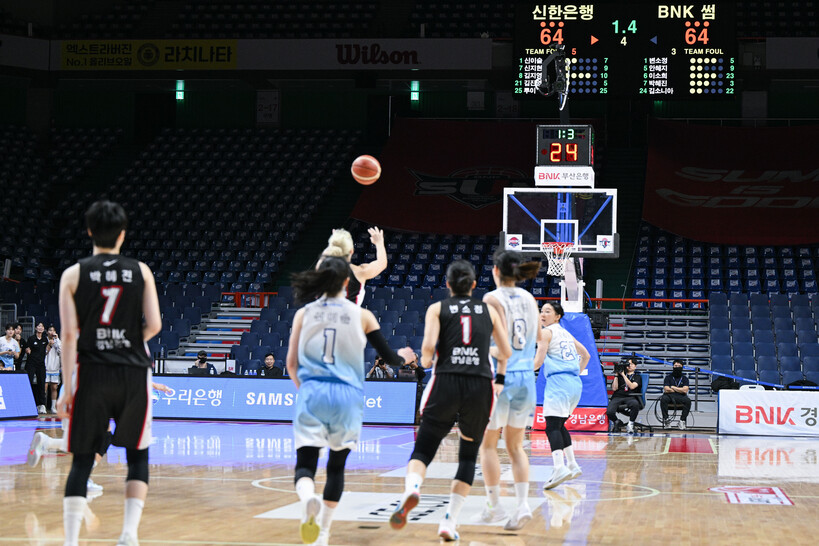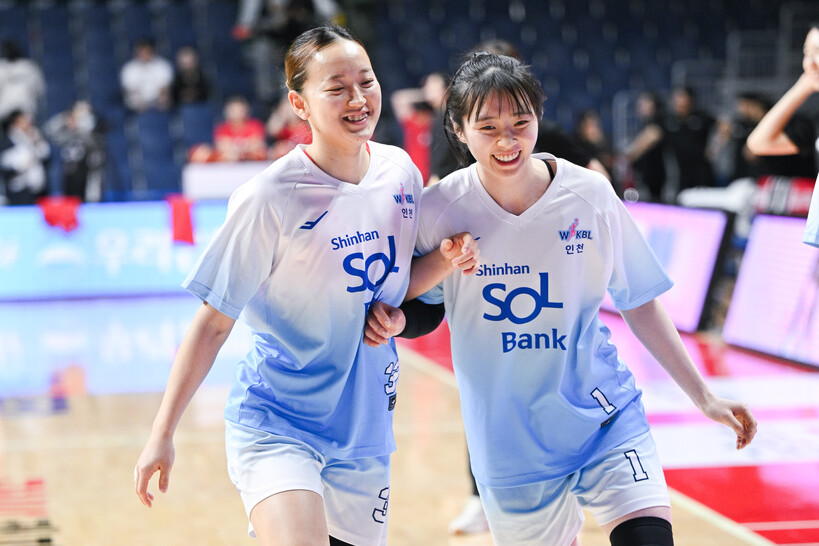 인천 신한은행은 18일 부산사직체육관에서 열린 BNK금융 2025~2026 여자프로농구 부산 BNK썸과의 맞대결에서 2차 연장 접전 끝에 85-79로 승리했다.