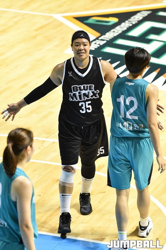 [점프볼=청라/유용우 기자]  7일 인천 서구 하나글로벌캠퍼스에 위치한 하나은행 연습체육관에서 열린 하나원큐와 삼성생명의 연습경기, 삼성생명 김한별이 자유투를 얻고 동료들에게 걸어가고 있다.