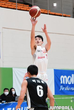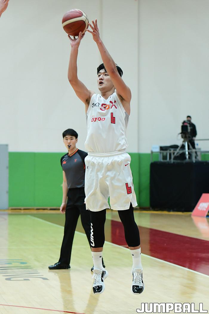 [점프볼=이천/박상혁 기자] 4일 경기도 이천 LG챔피언스파크에서 열린 2020-2021 KBL D리그 1차대회 SK와 상무의 결승전 경기, SK 장문호가 3점슛을 시도하고 있다.