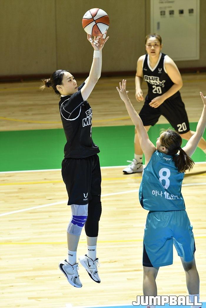 [점프볼=청라/유용우 기자]  7일 인천 서구 하나글로벌캠퍼스에 위치한 하나은행 연습체육관에서 열린 하나원큐와 삼성생명의 연습경기, 삼성생명 박혜미가 중거리슛을 던지고 있다.