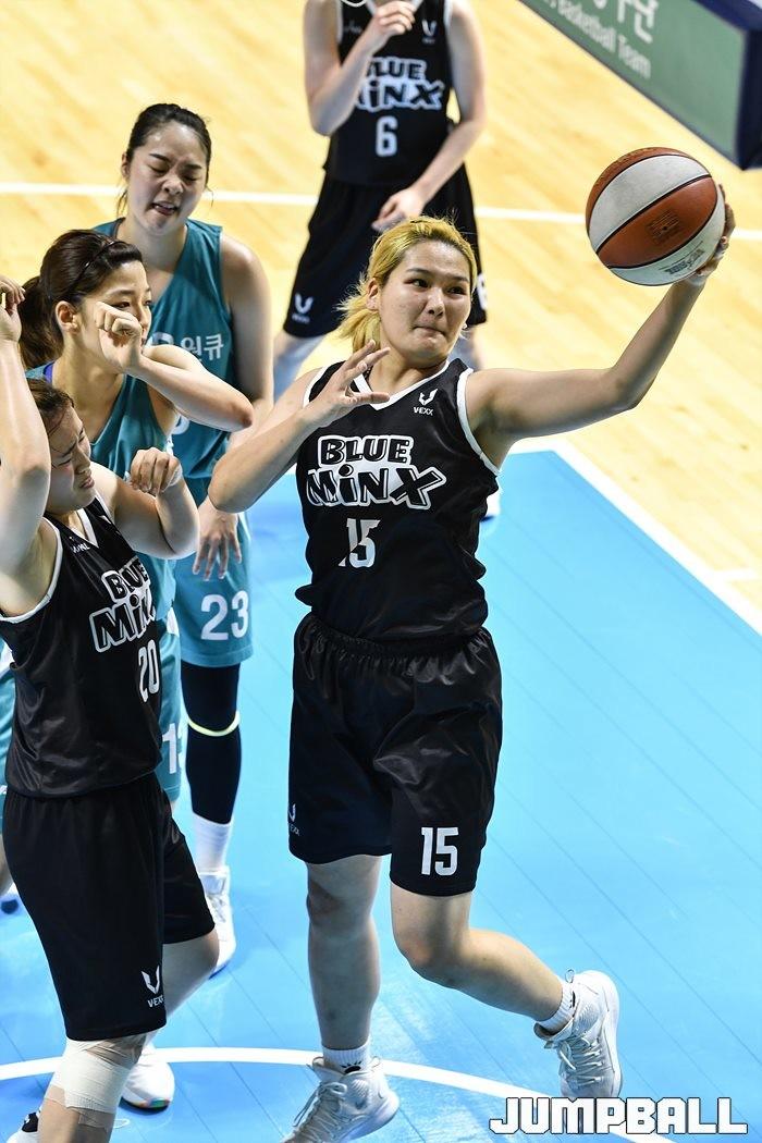 [점프볼=청라/유용우 기자]  7일 인천 서구 하나글로벌캠퍼스에 위치한 하나은행 연습체육관에서 열린 하나원큐와 삼성생명의 연습경기, 삼성생명 이수정이 리바운드를 잡고 있다.