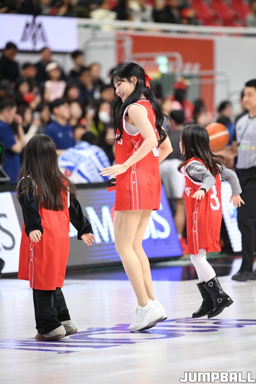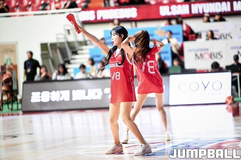 [점프볼=울산/유용우 기자] 1일 울산 동천체육관에서 열린 2025-2026 LG전자 프로농구 울산 현대모비스과 안양 정관장의 경기, 현대모비스 치어리더들이 어린이 팬들과 응원전을 펼치며 홈팬의 함성을 이끌고 있다.