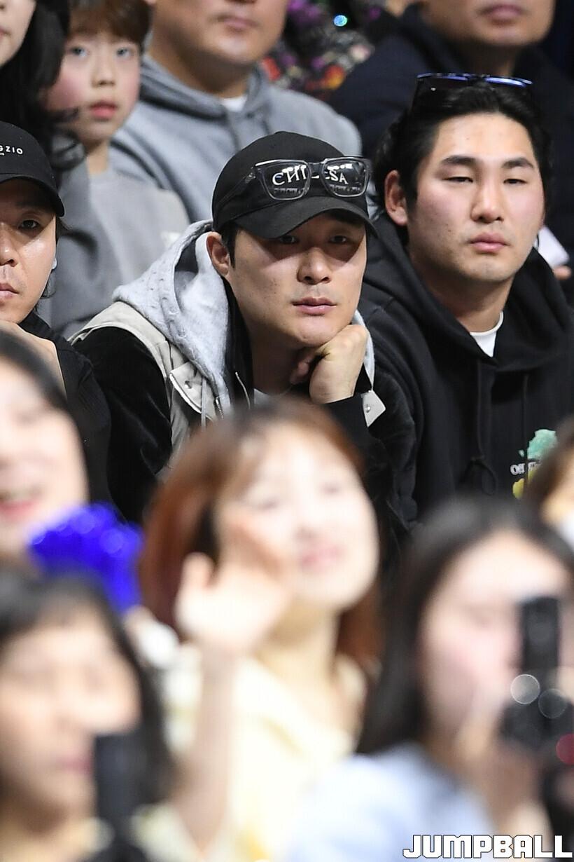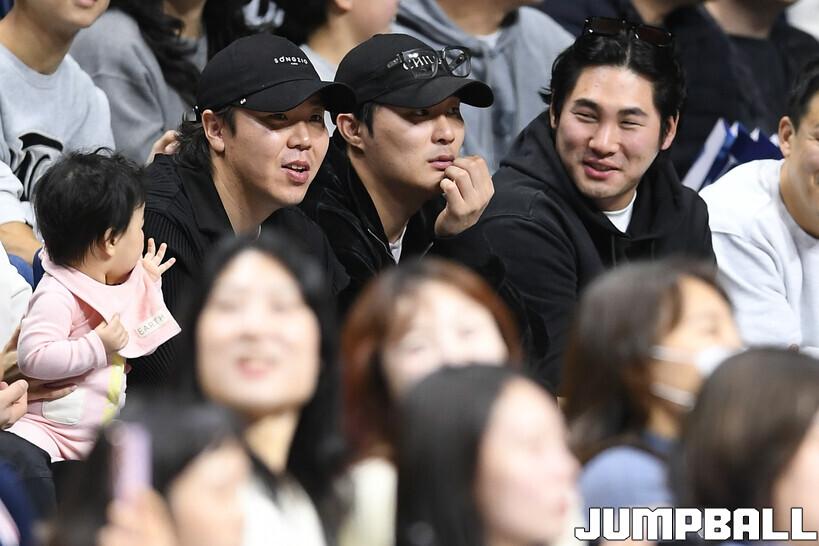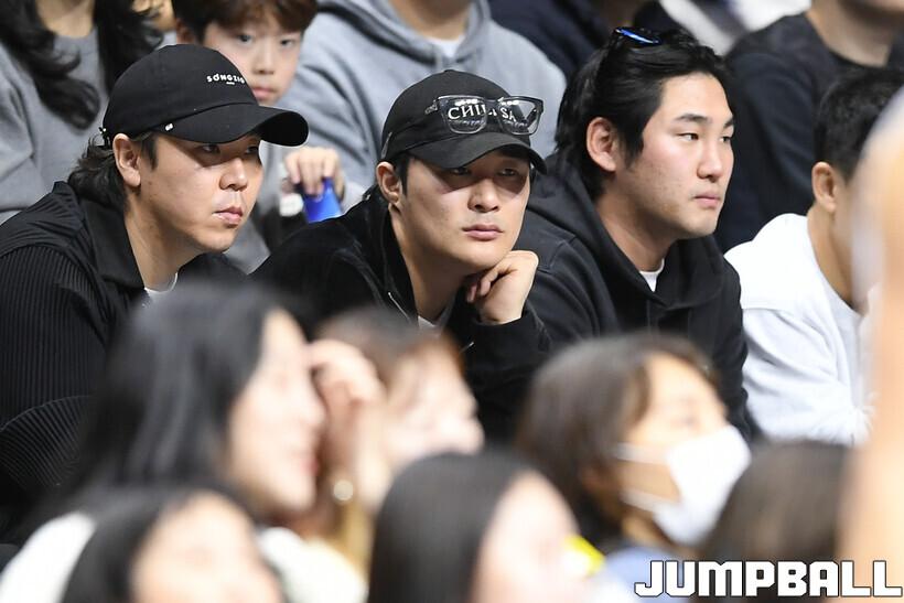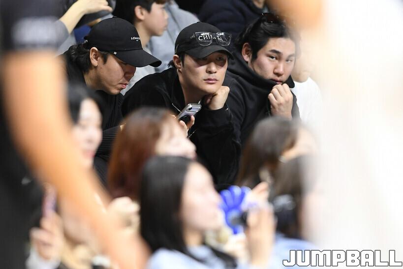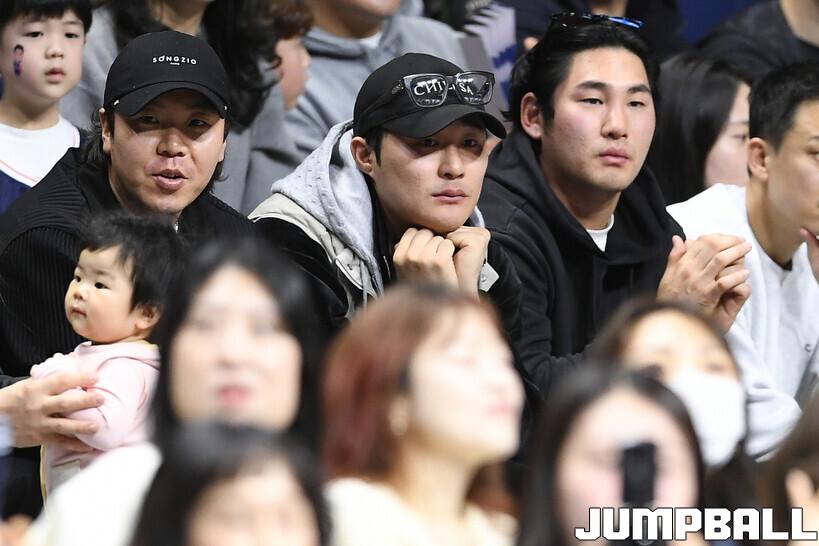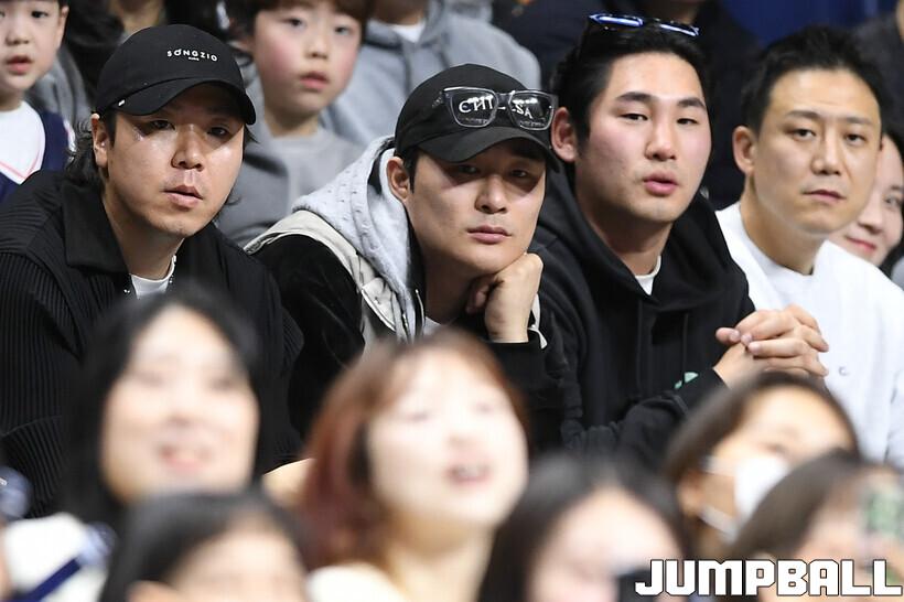 [점프볼=부산/유용우 기자] 14일 부산 사직실내체육관에서 열린 2025-2026 LG전자 프로농구 부산 KCC와 안양 정관장의 경기, 메이저리그 애틀란타 브레이브스에서 활약하는 김하성이 경기를 관전하고 있다.