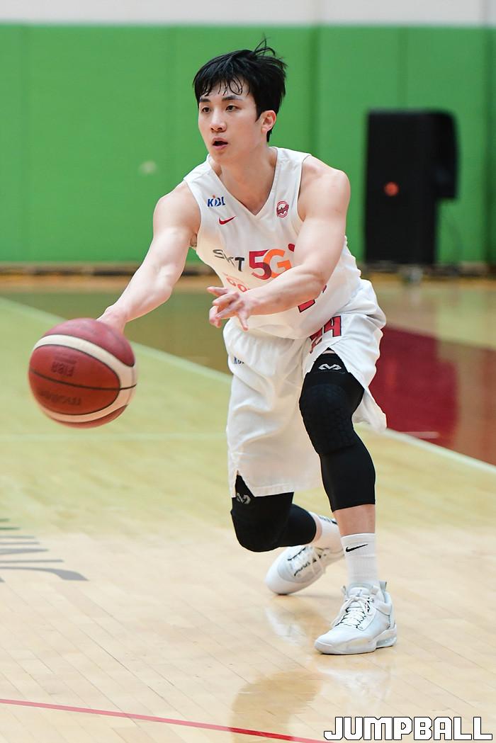 [점프볼=이천/박상혁 기자] 4일 경기도 이천 LG챔피언스파크에서 열린 2020-2021 KBL D리그 1차대회 SK와 상무의 결승전 경기, SK 배병준이 인사이드로 볼을 패스 하고있다.